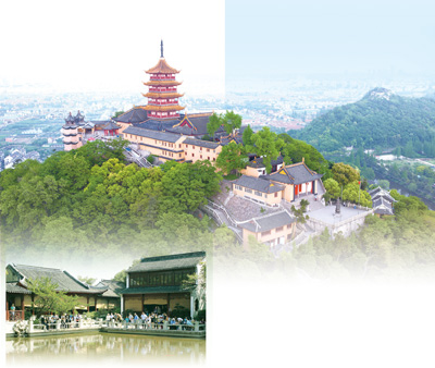 大图:南通狼山广教禅寺。左下图:南通狼山啬园一角。资料图片