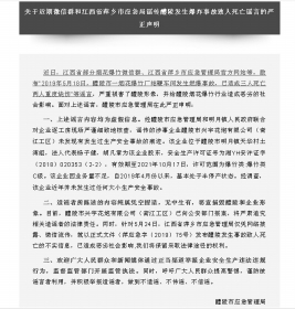 而发布这些谣言的,除了江西省部分烟花爆竹微信群等民间消息群外,还有疑似被网络谣言忽悠了的官方机构——江西省萍乡市应急管理局官方网站。