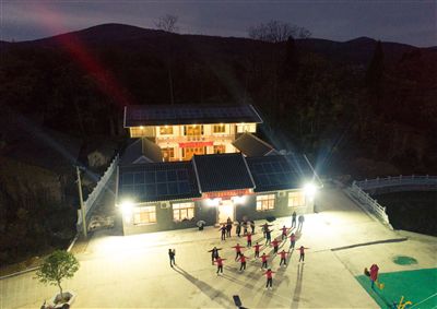 12月18日傍晚,晚晴广场灯光亮起,村里的舞蹈队跳起了欢快的广场舞。