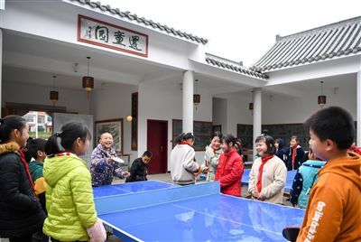 12月18日,“老农活动中心”还童园,放学后的小学生开心地打乒乓球。