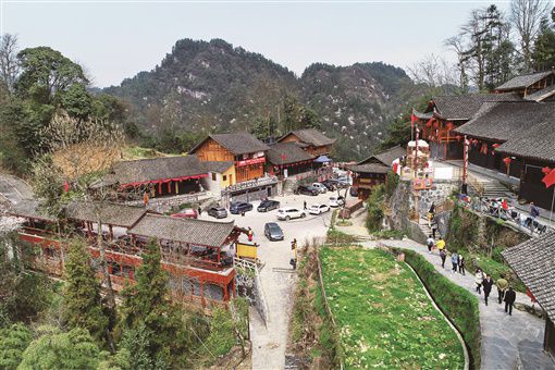3月14日,花垣县双龙镇十八洞村,早樱布满山头寨前,游人渐多。湖南日报记者 童迪 摄