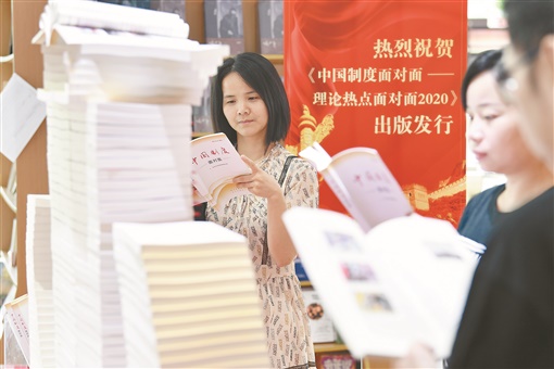 《中国制度面对面——理论热点面对面2020》7月13日在全国发行,湖南图书城同步上市。该书一上市就掀起了一股抢购热潮,记者在现场看到,前来购书的读者络绎不绝。湖南图书城为确保广大读者能在第一时间购买到新书,做了充分备货。