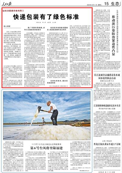 “随着《绿色产品评价 快递封装用品》《快件航空运输信息交换规范》等标准的制定出台,近年来,快递绿色包装领域的主要标准体系已初步建立。”北京印刷学院青岛研究院院长朱磊说。