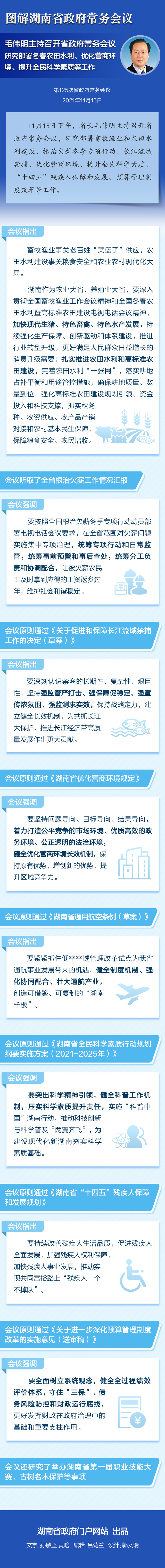 11月15日下午,省长毛伟明主持召开省政府常务会议,研究部署畜牧渔业和农田水利建设、根治欠薪冬季专项行动、长江流域禁捕、优化营商环境、提升全民科学素质、“十四五”残疾人保障和发展、预算管理制度改革等工作。