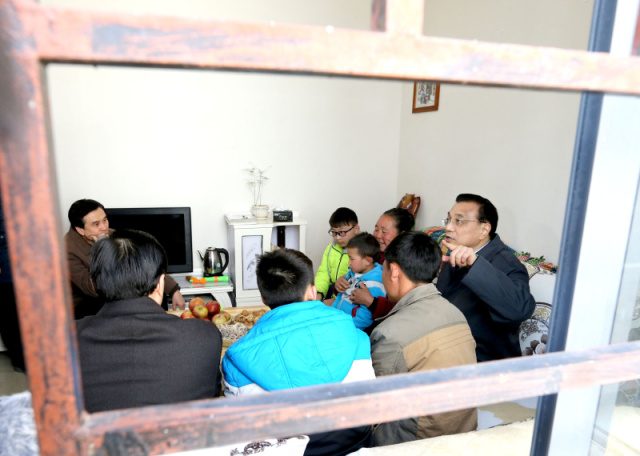 2月1日,李克强到宁夏固原西吉县半子沟村看望特困村民王进宝一家。了解到王家大女儿为照顾卧病母亲辍学,上初二的儿子立志当医生为母治病,总理说,你们要加倍努力,对得起姐姐付出。希望搬迁后更好的环境,能让你们妈妈看病方便,姐姐也有机会重返校园。