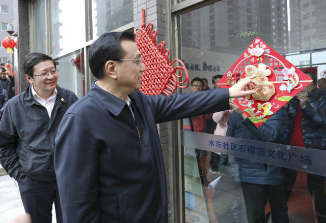 “希望这个‘福’字,能让你们鱼乐连年,富贵有余。”2月14日,李克强把一张烫金“福”字,亲手贴在贵阳渔安新城棚改新区的大门上,送上对这个新建小区的新春祝福。他叮嘱小区负责人,棚户区改造不仅是建新房子,也是创造新生活,要营造宜居环境,让居民住得称心、安心、舒心。
