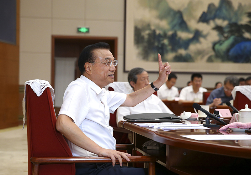 8月25日,中共中央政治局常委、国务院总理李克强主持召开推动制造强国建设、持续推进经济结构转型升级座谈会,研究部署相关工作。新华社 谢环驰 摄