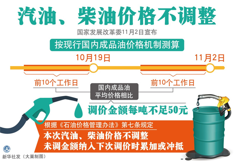 图表:汽油、柴油价格不调整 新华社发 大巢制图