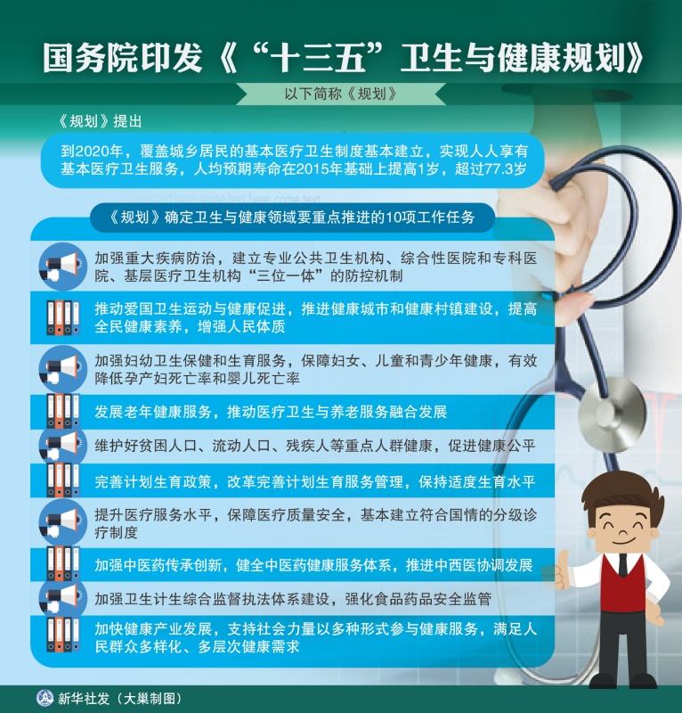 图表:国务院印发《“十三五”卫生与健康规划》 新华社发 大巢制图