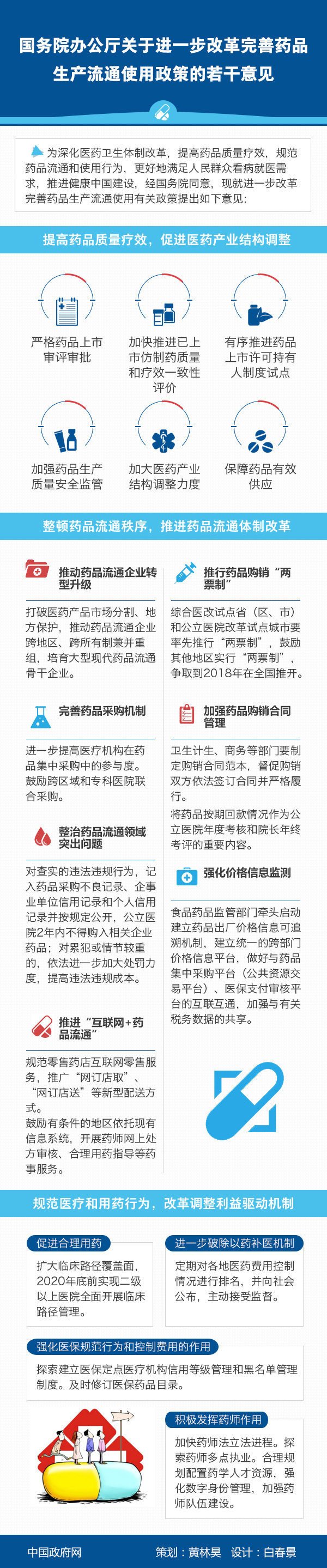 图解:国务院办公厅关于进一步改革完善药品生产流通使用政策的若干意见 中国政府网制作 策划:黄林昊 设计:白春景