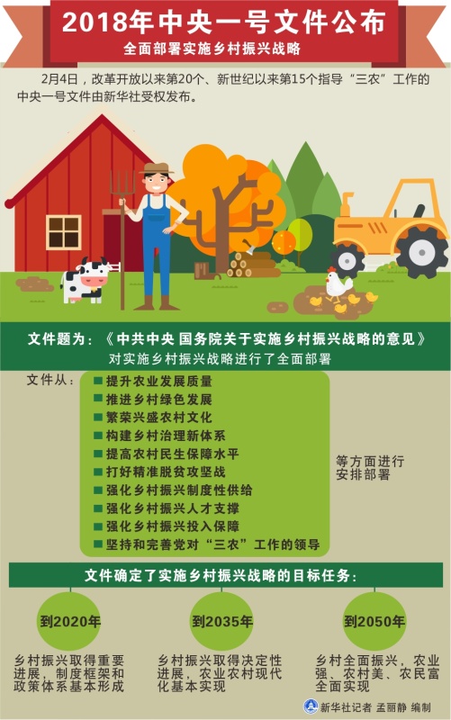 图表:2018年中央一号文件公布 全面部署实施乡村振兴战略