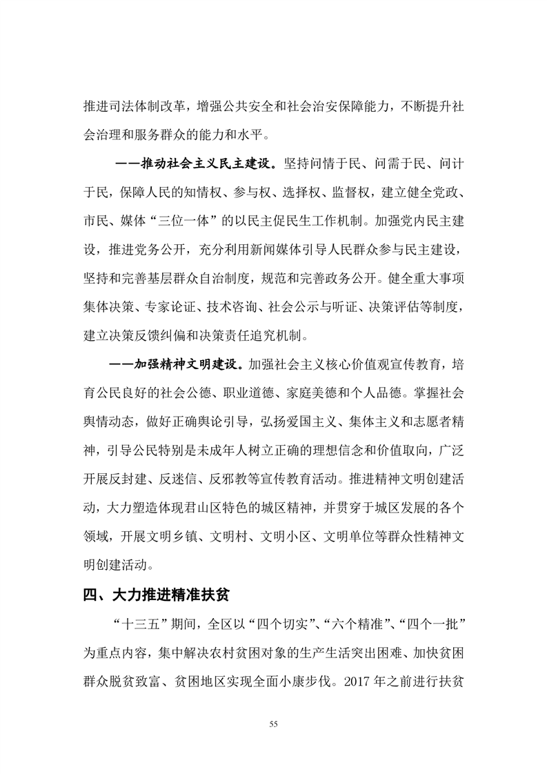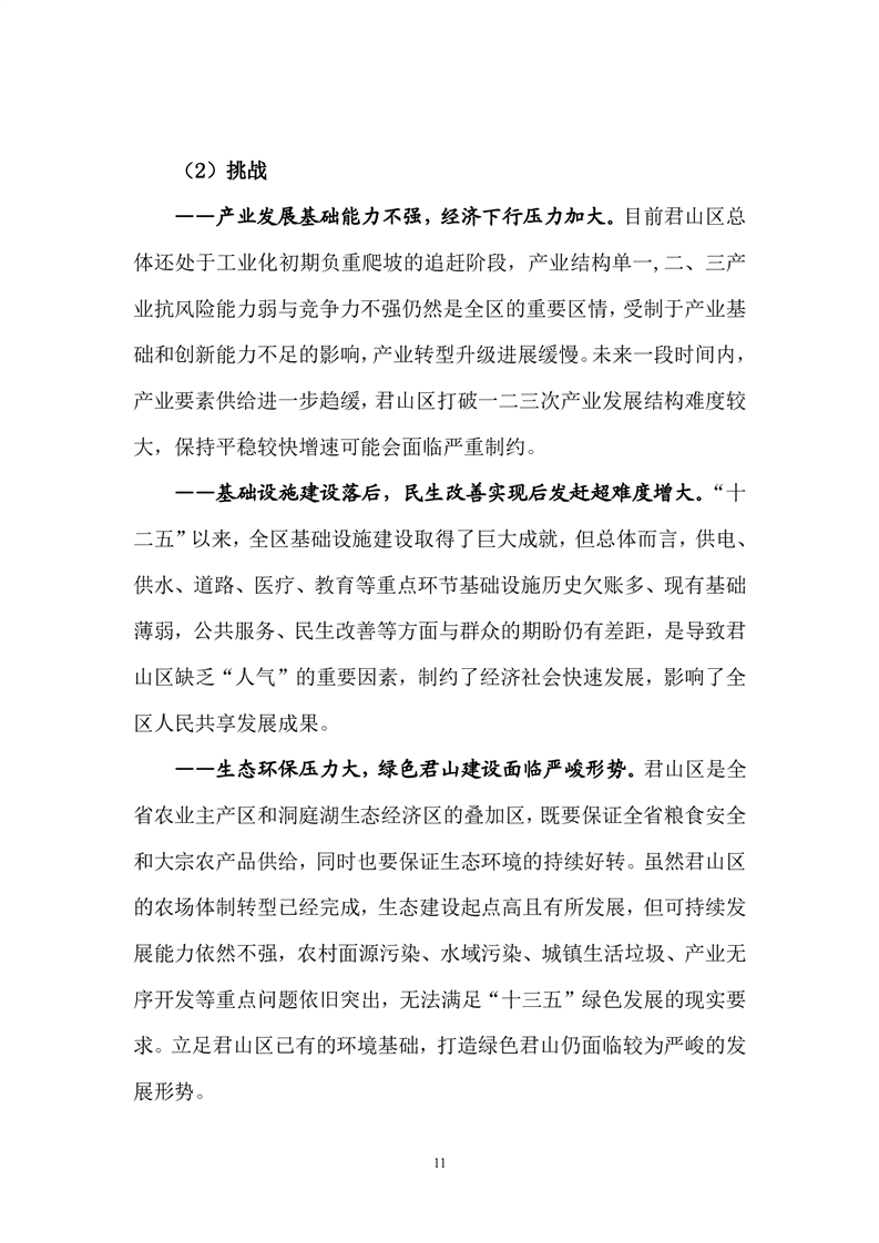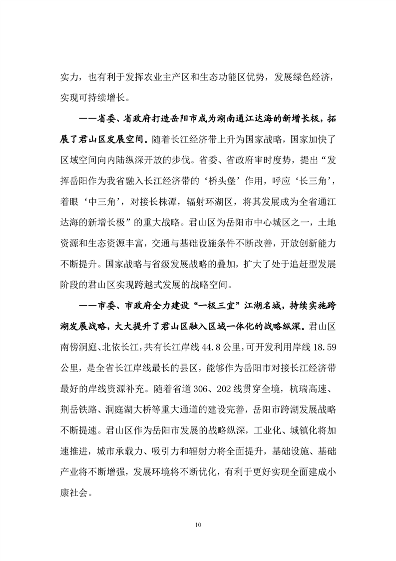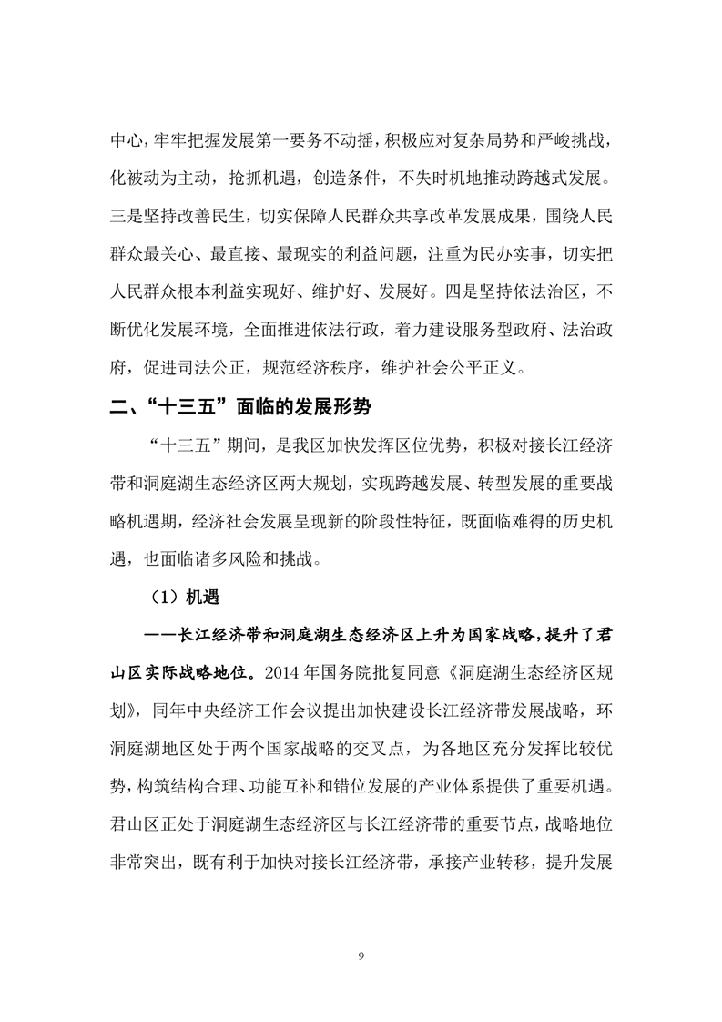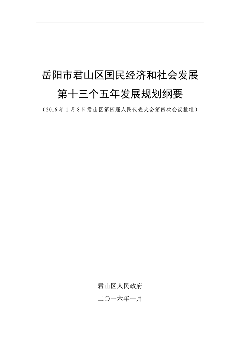 岳阳市君山区国民经济和社会发展第十三个五年发展规划纲要