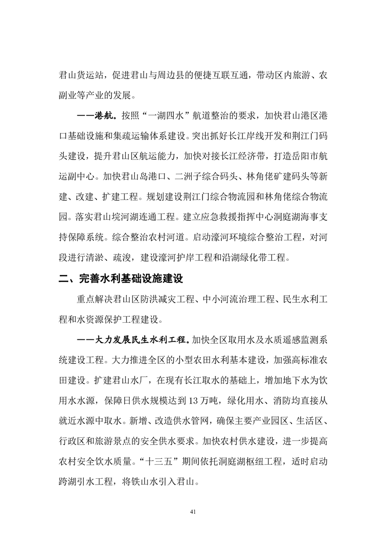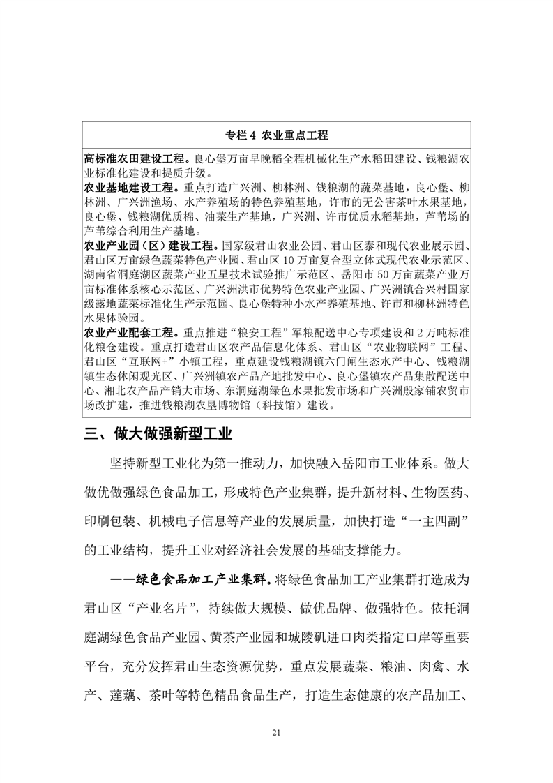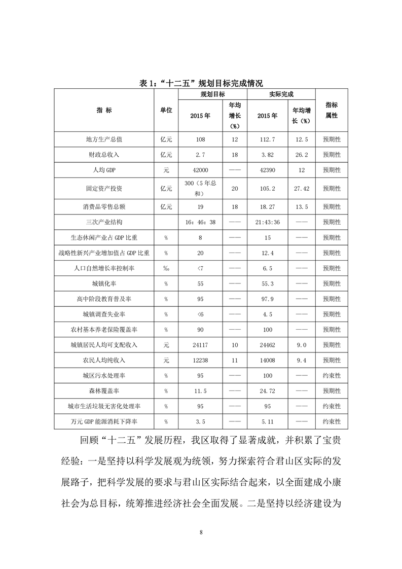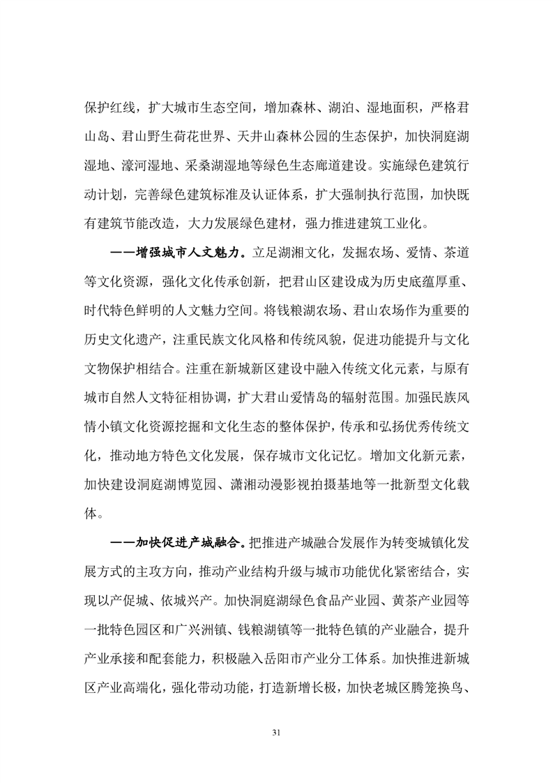 岳阳市君山区国民经济和社会发展第十三个五年发展规划纲要