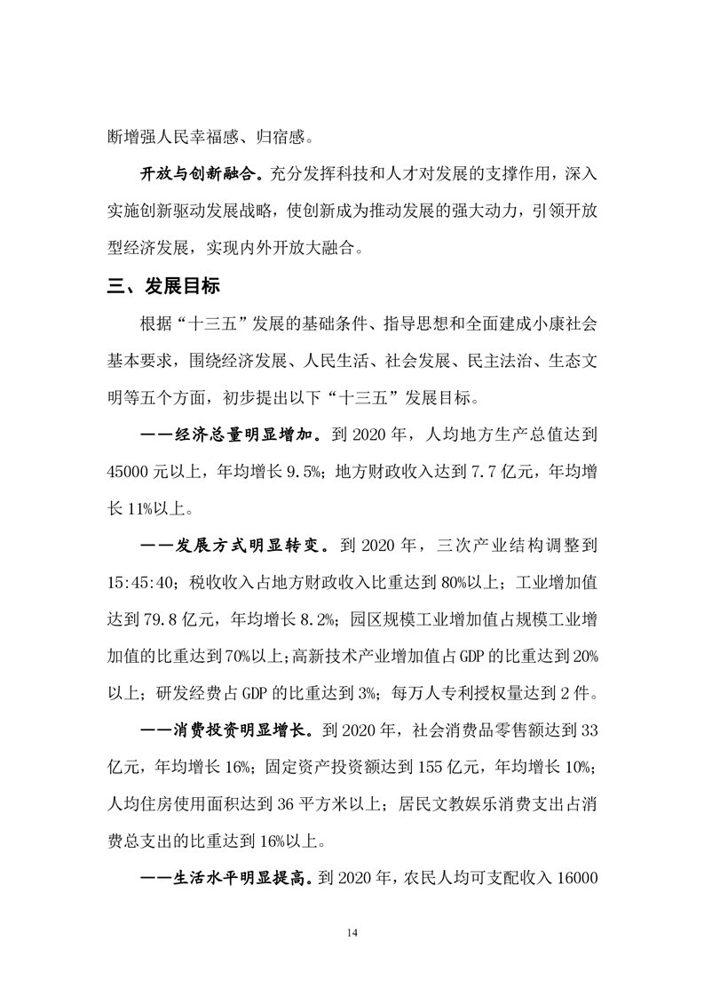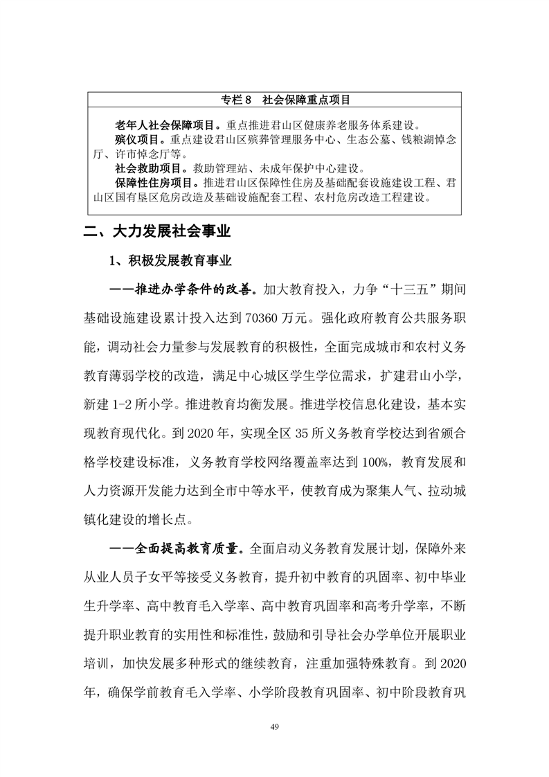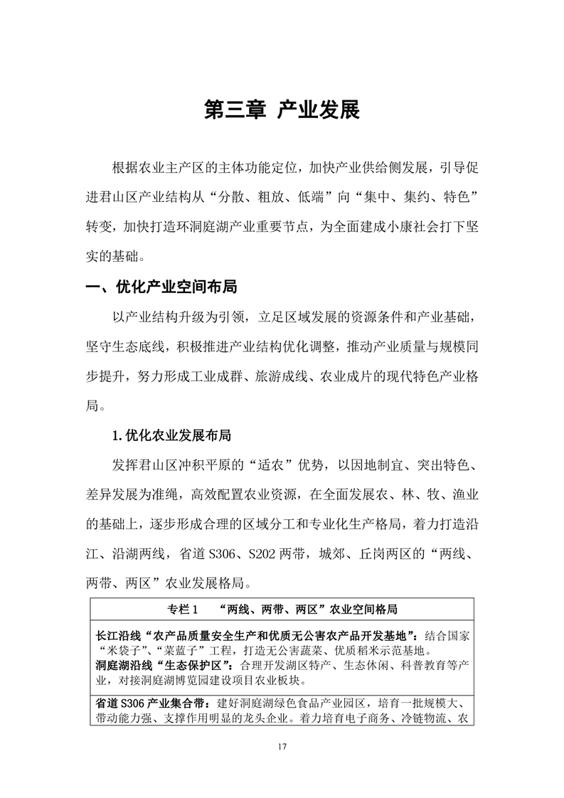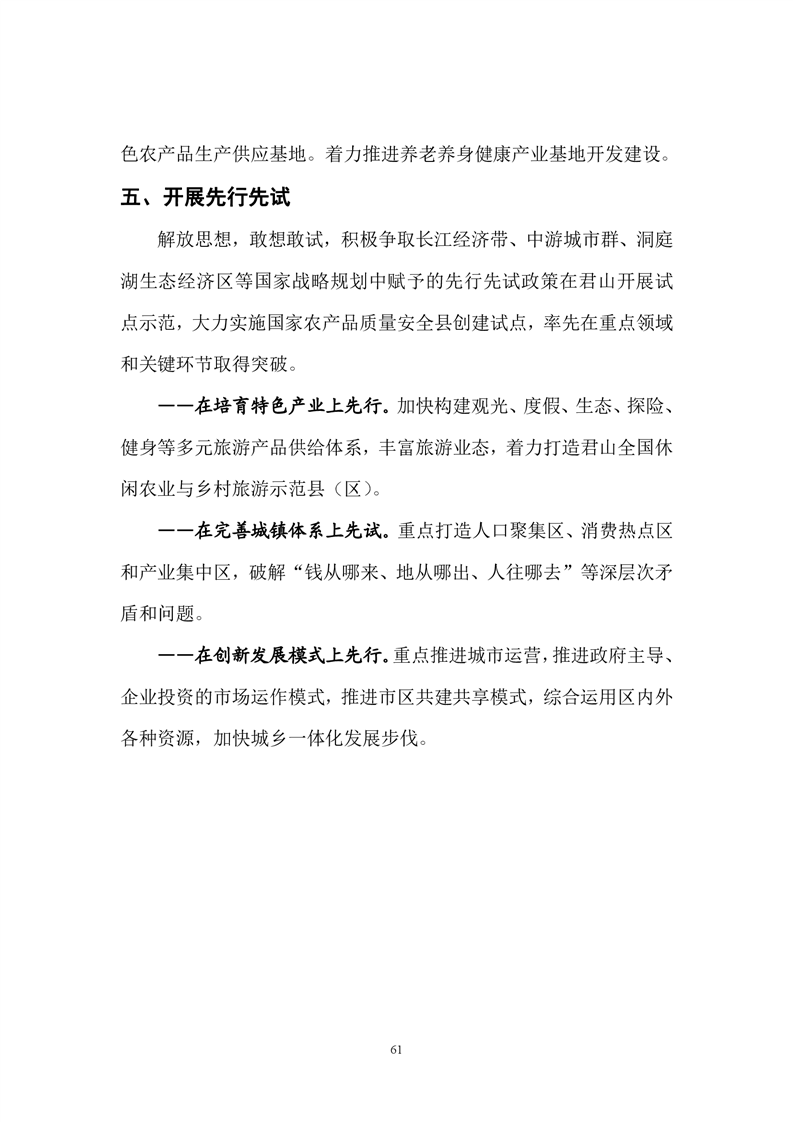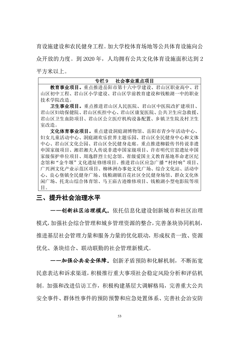岳阳市君山区国民经济和社会发展第十三个五年发展规划纲要
