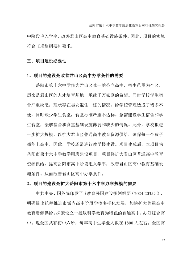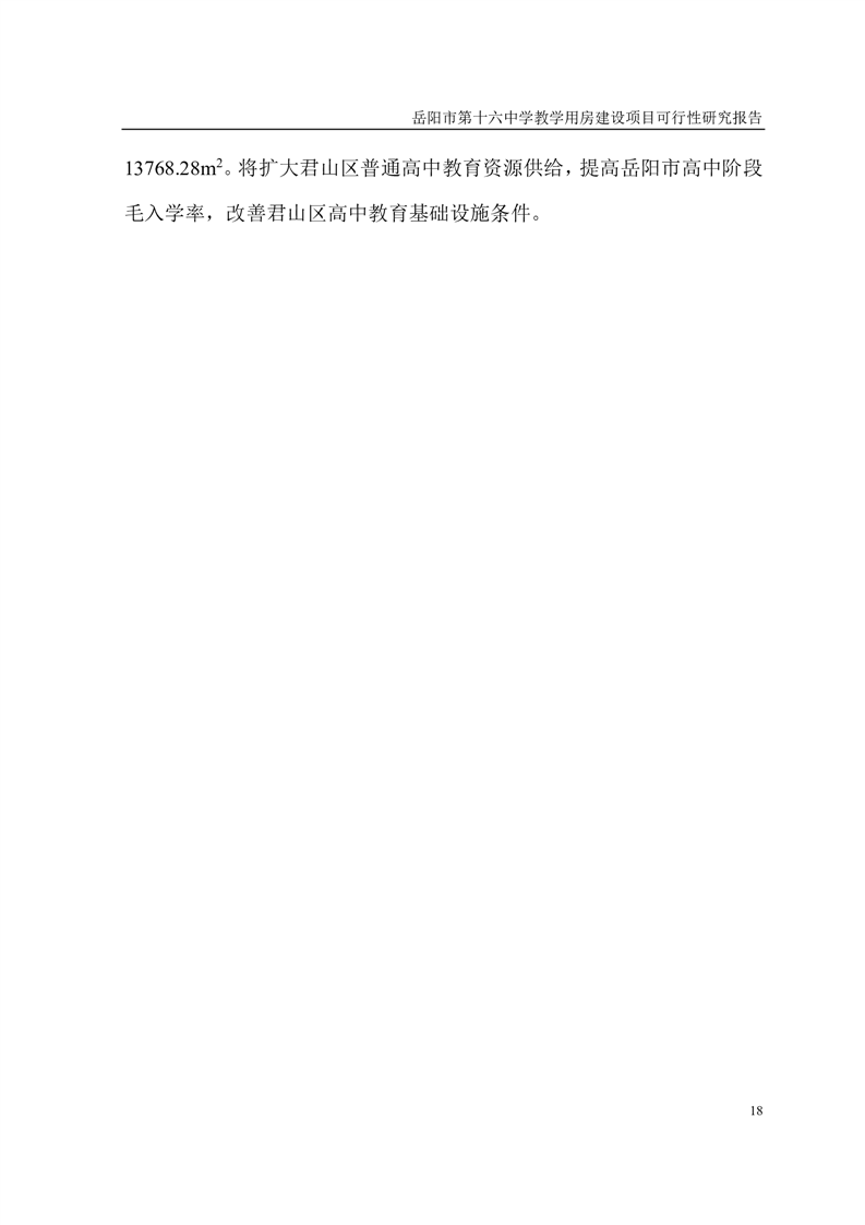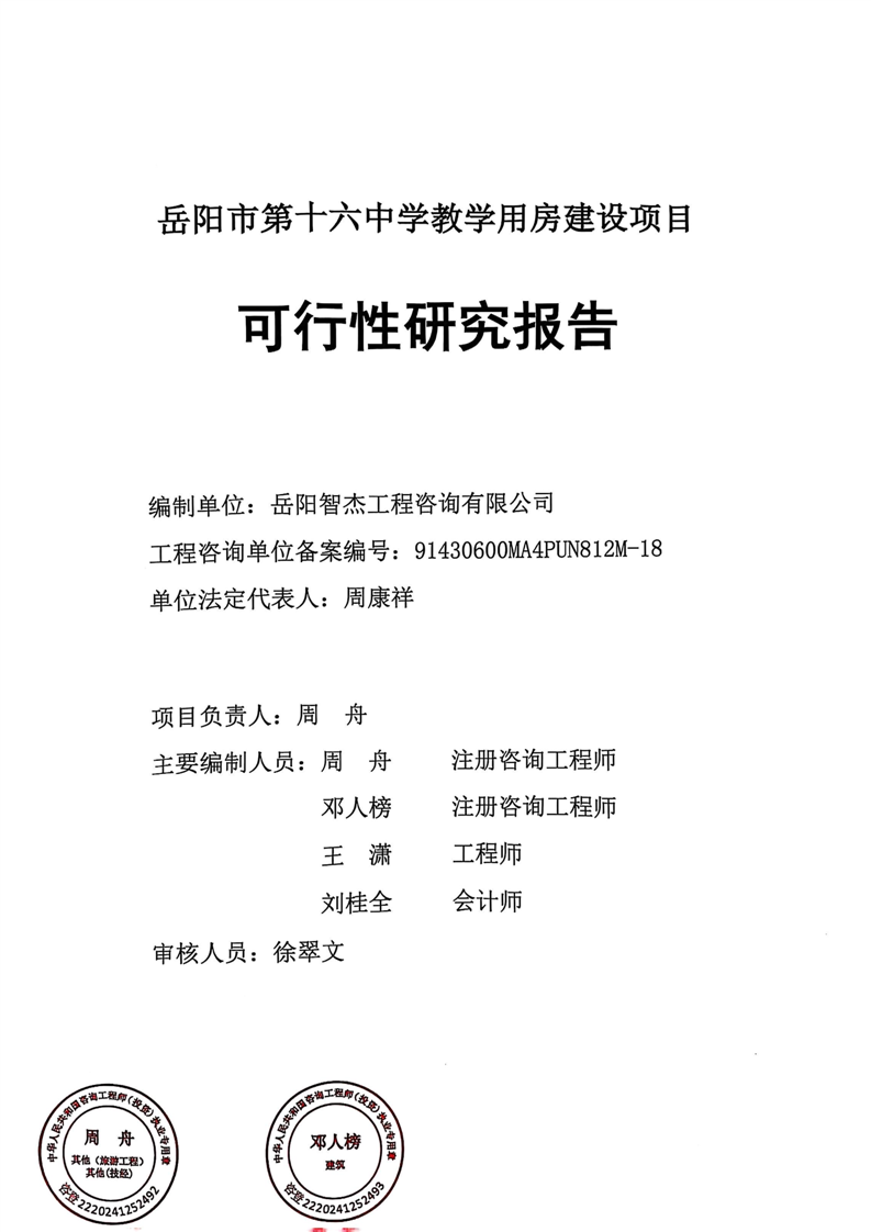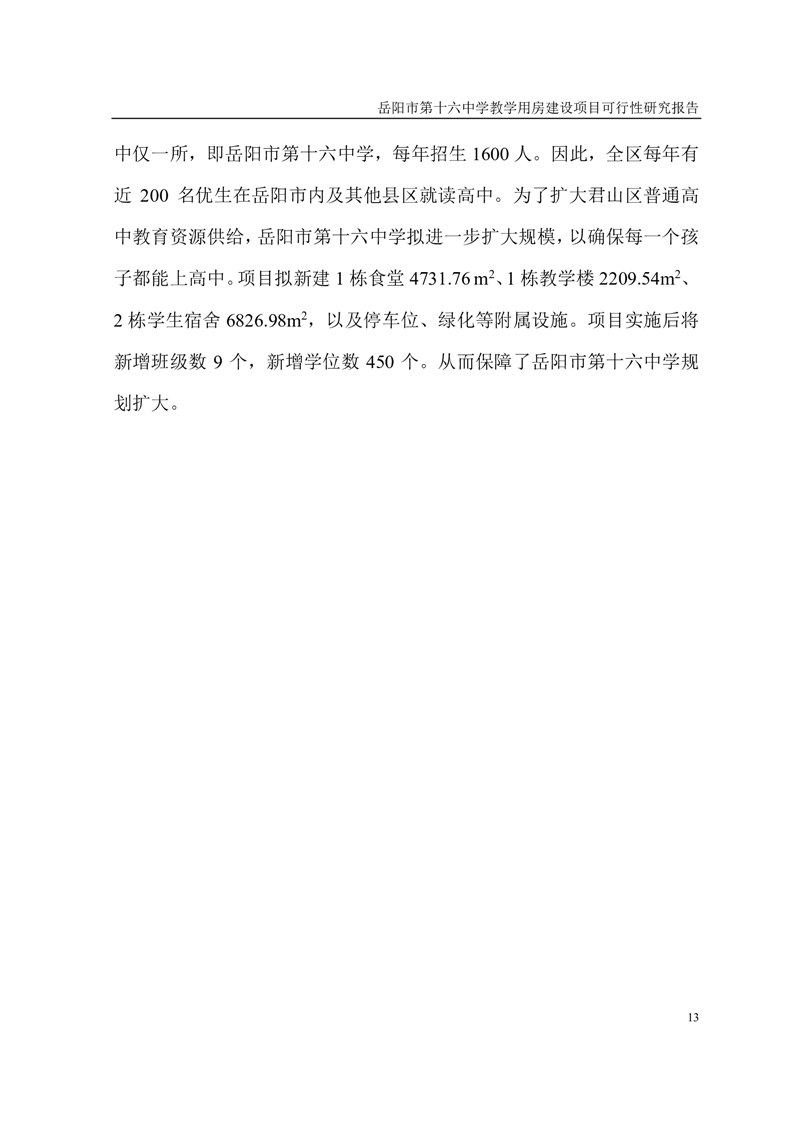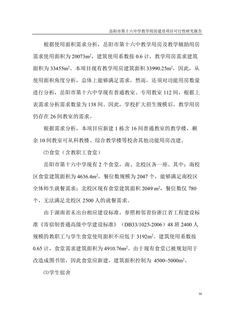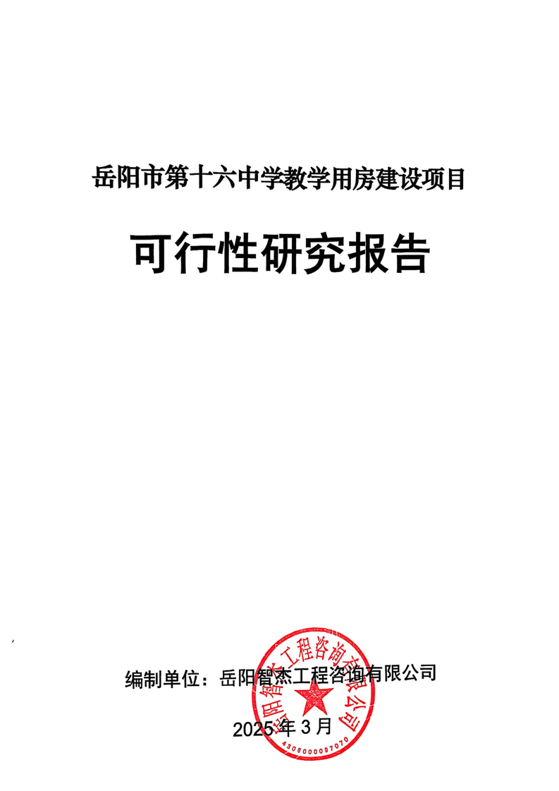 岳阳市第十六中学教学用房建设项目可行性研究报告