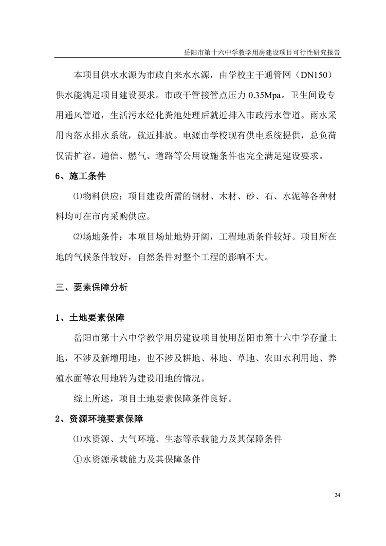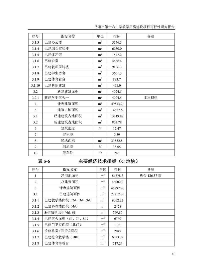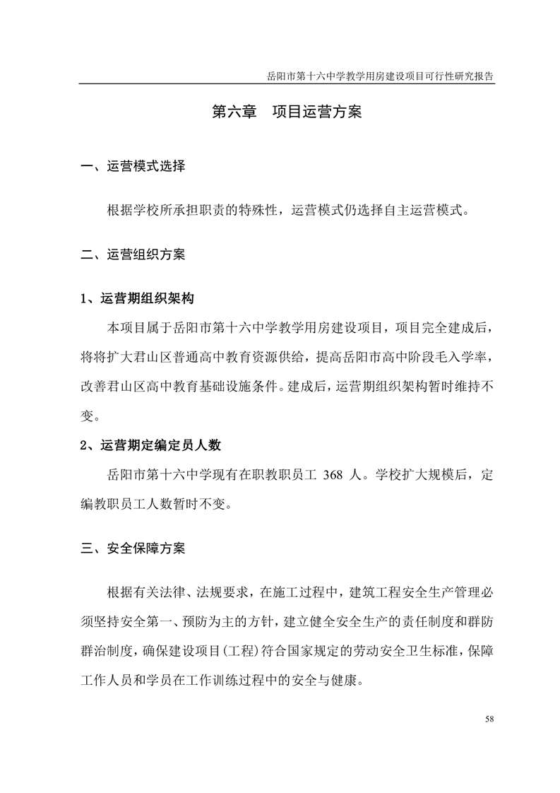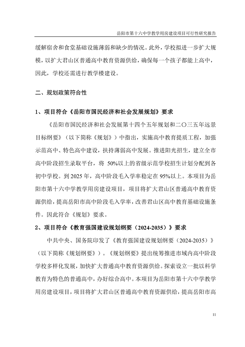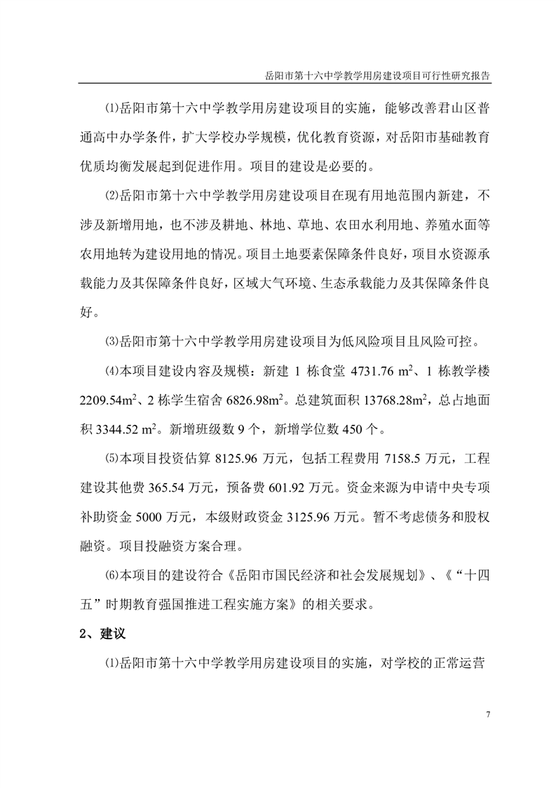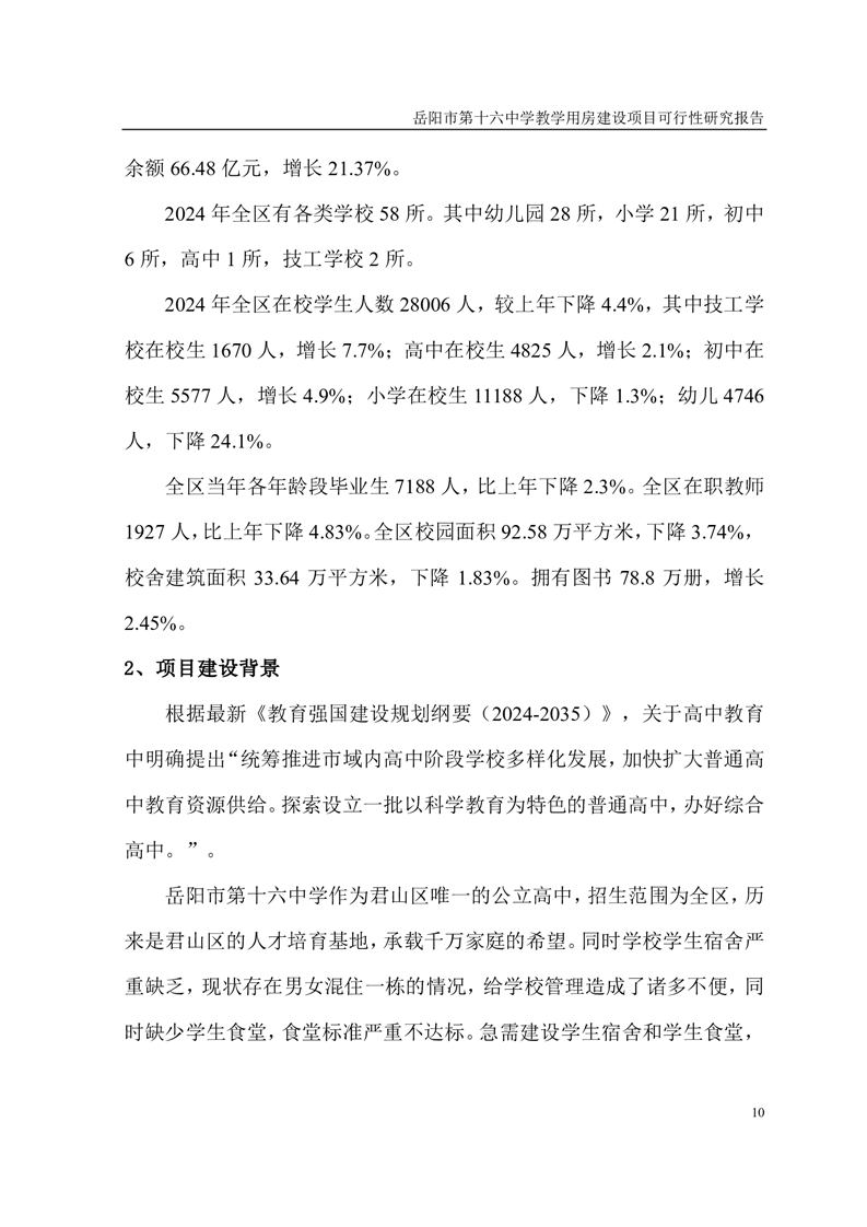 岳阳市第十六中学教学用房建设项目可行性研究报告
