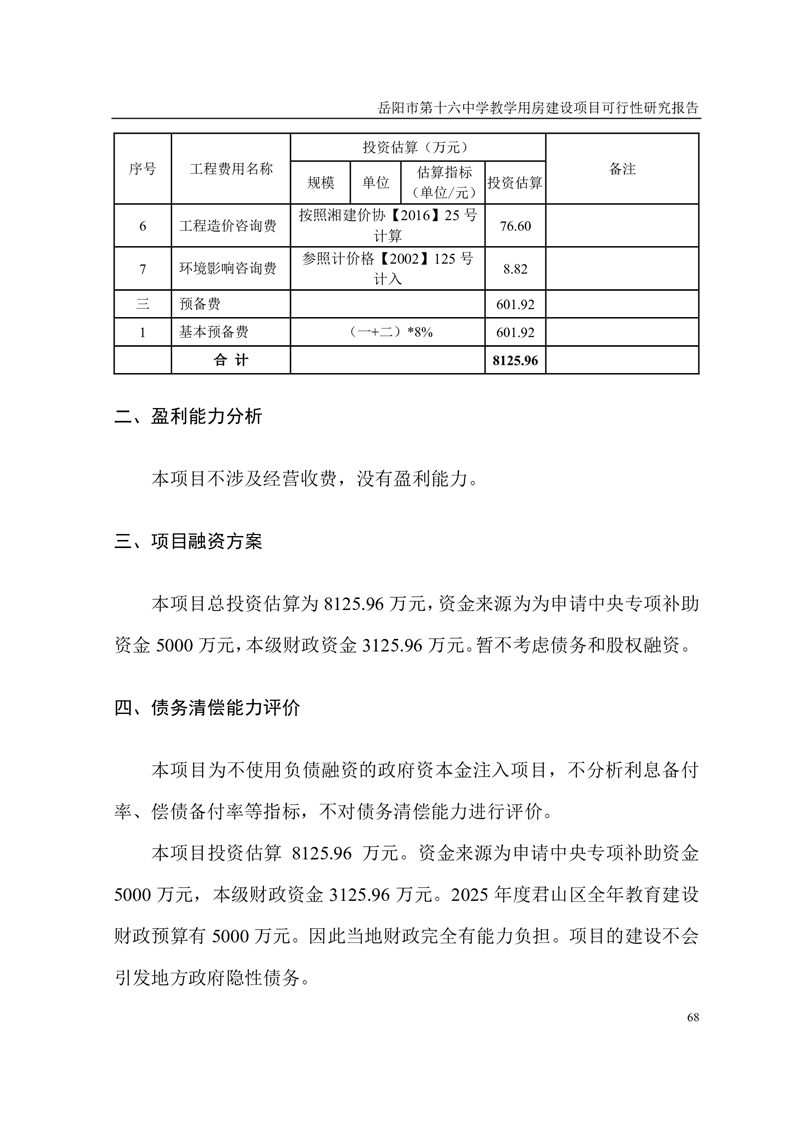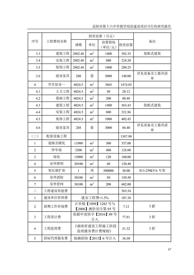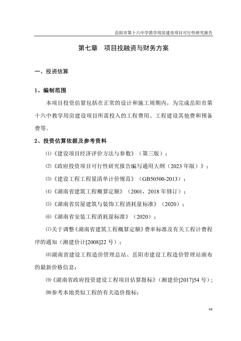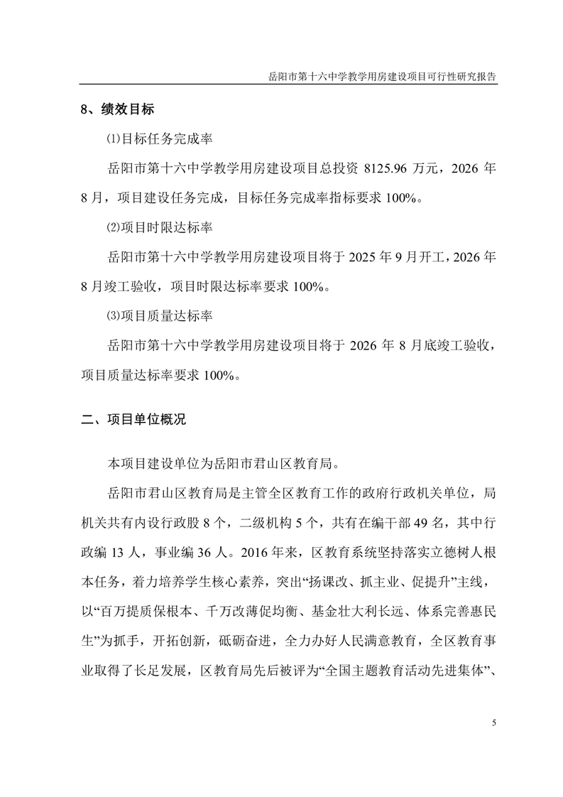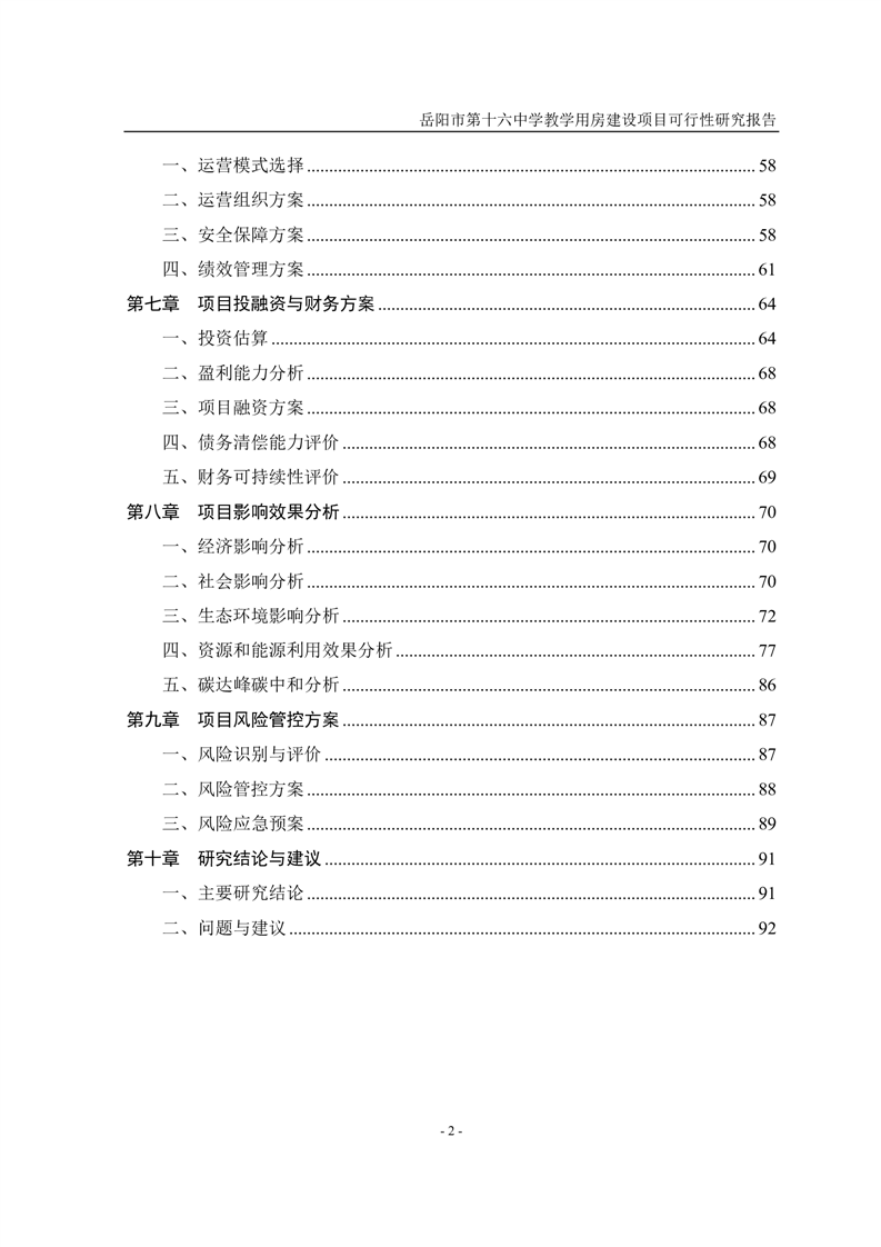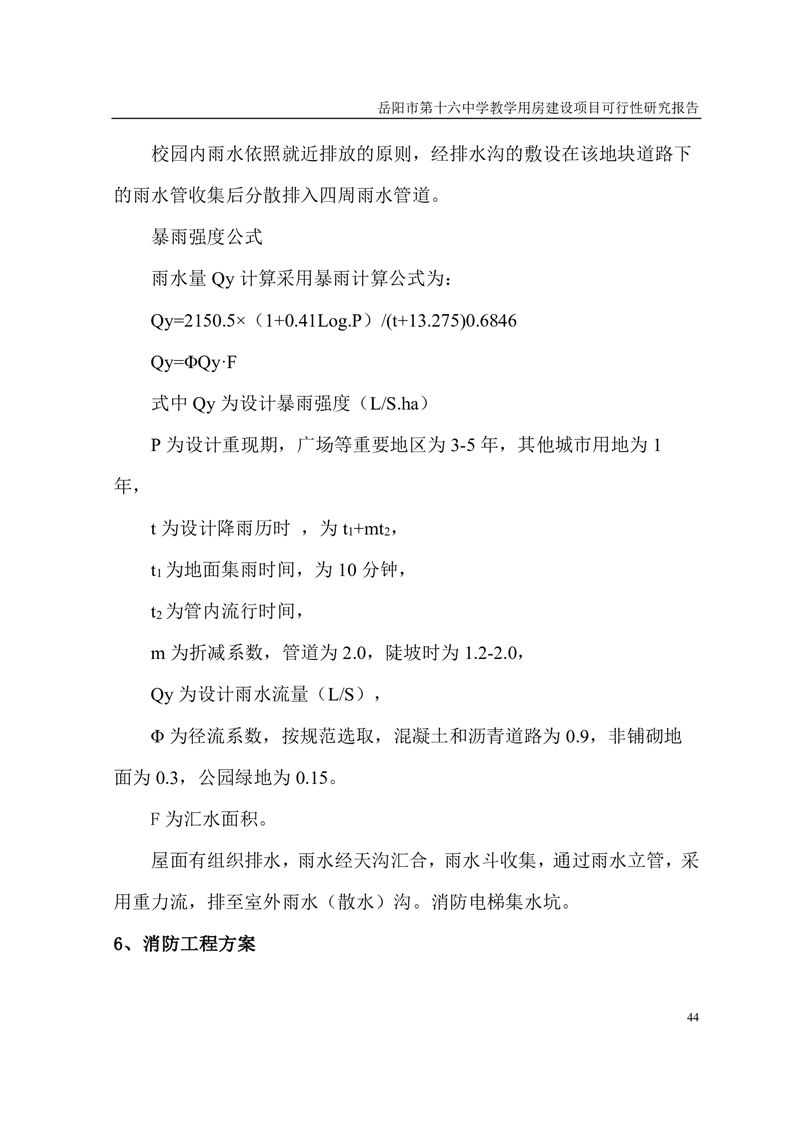岳阳市第十六中学教学用房建设项目可行性研究报告