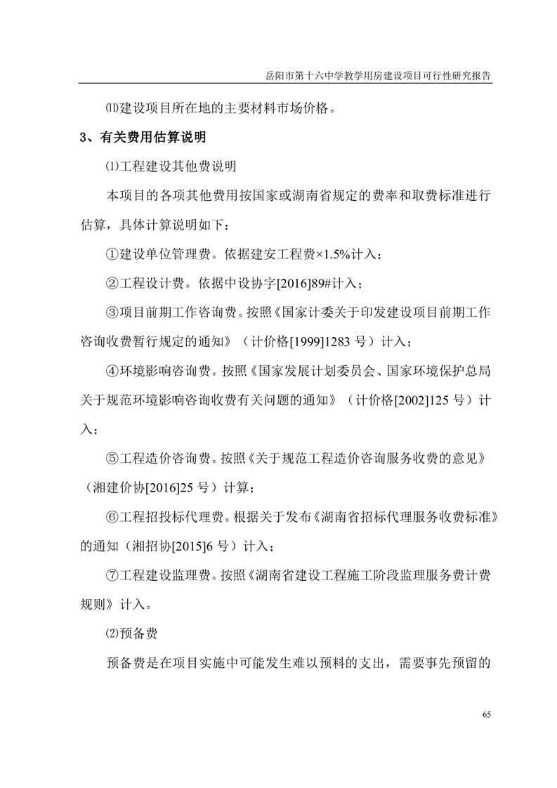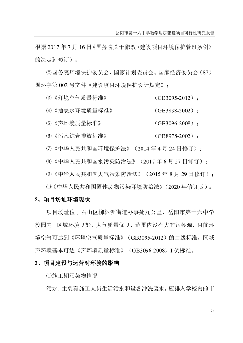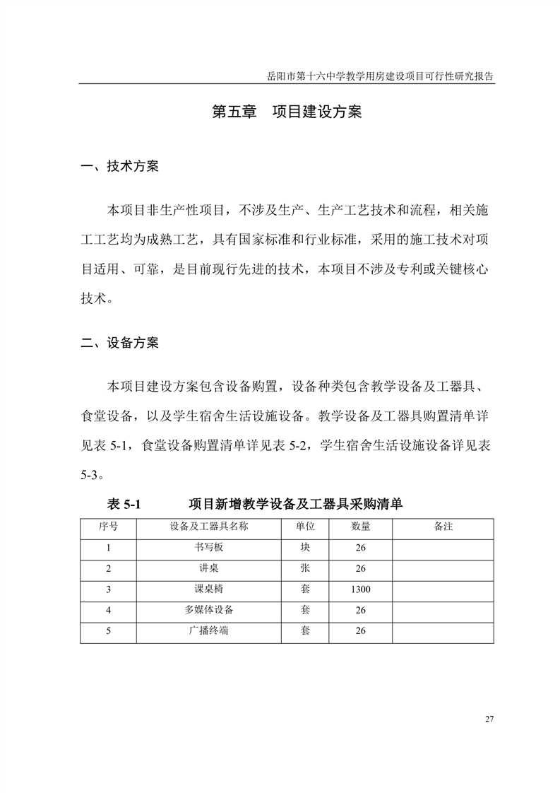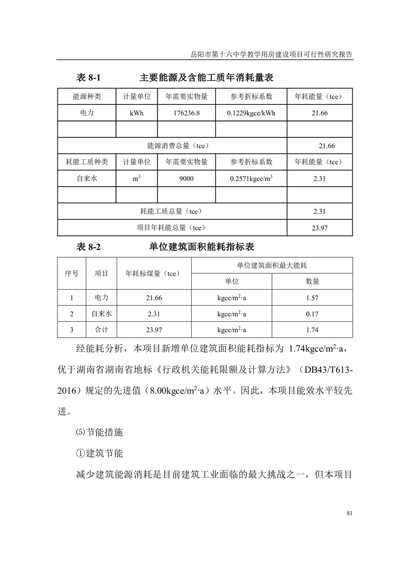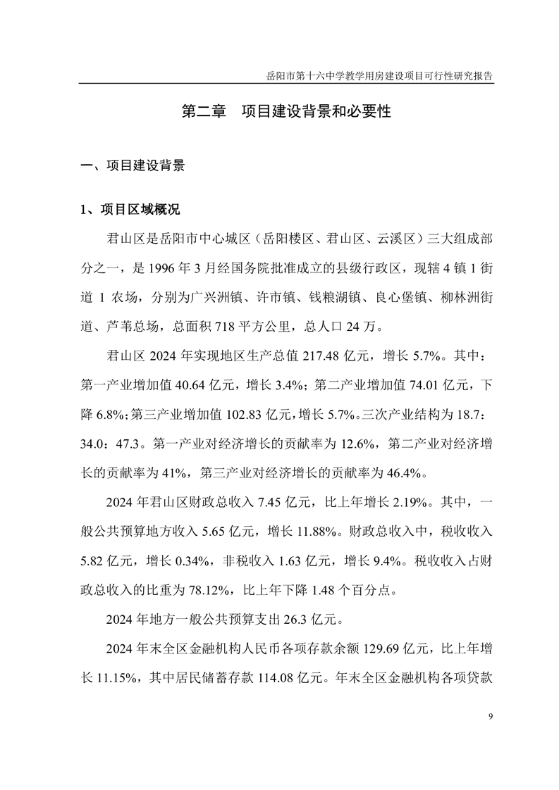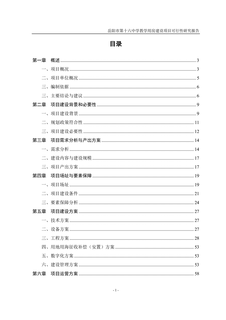 岳阳市第十六中学教学用房建设项目可行性研究报告