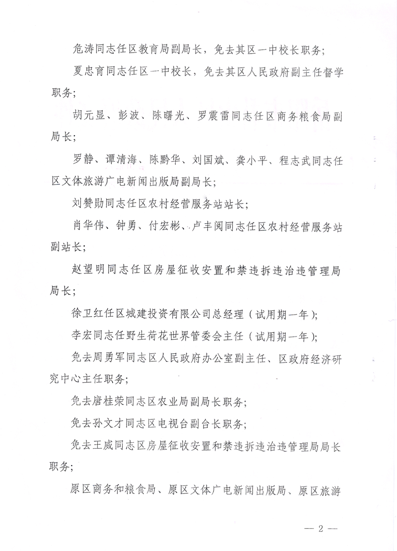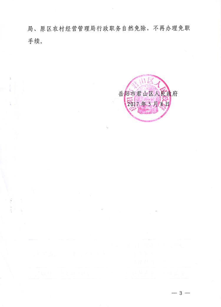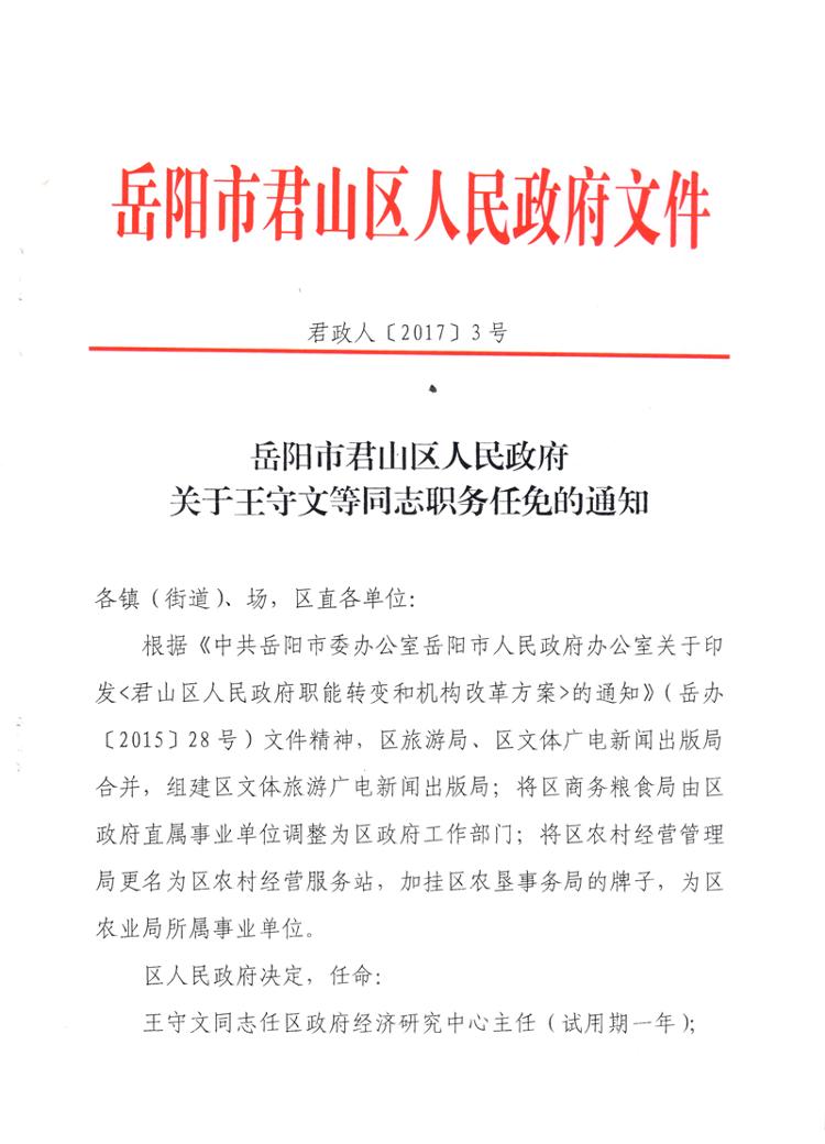 岳阳市君山区人民政府关于王守文等同志职务任免的通知