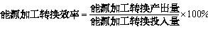 能源加工转换效率 指一定时期内,能源经过加工、转换后,产出的各种能源产品的数量与同期内投入加工转换的各种能源数量的比率。该指标是观察能源加工转换装置和生产工艺先进与落后、管理水平高低等的重要指标。计算公式为: