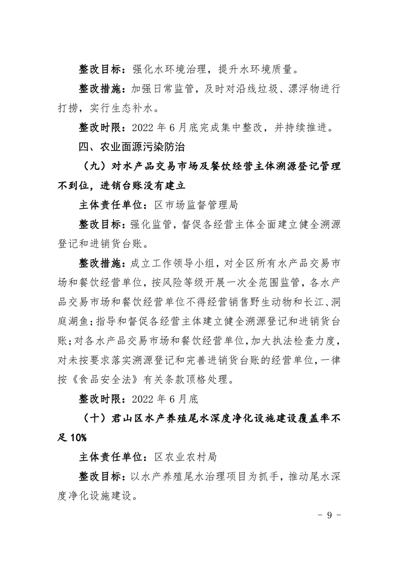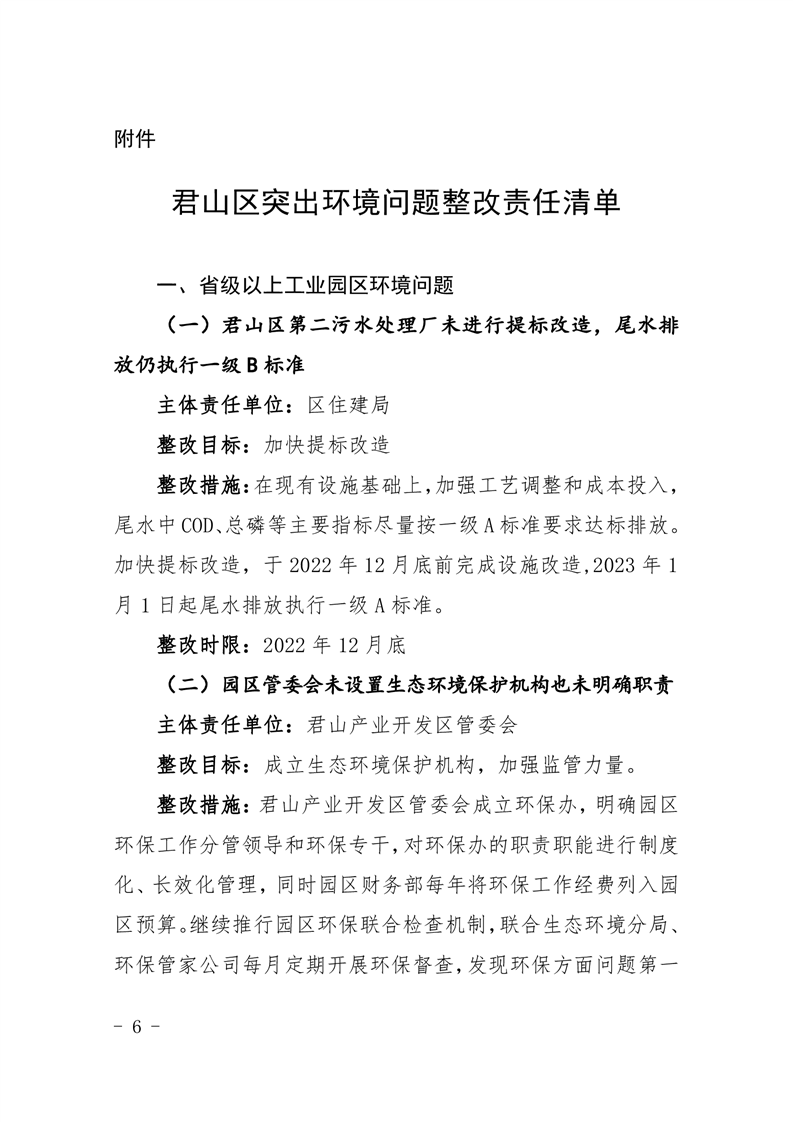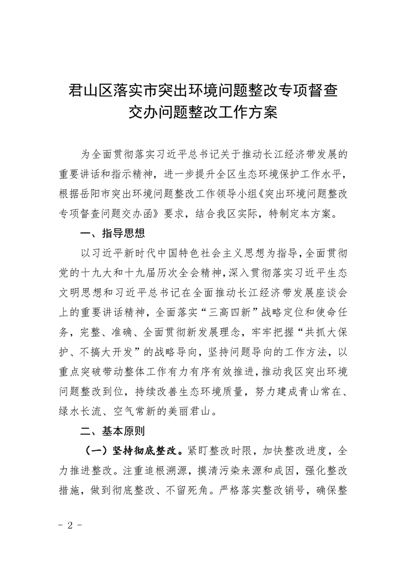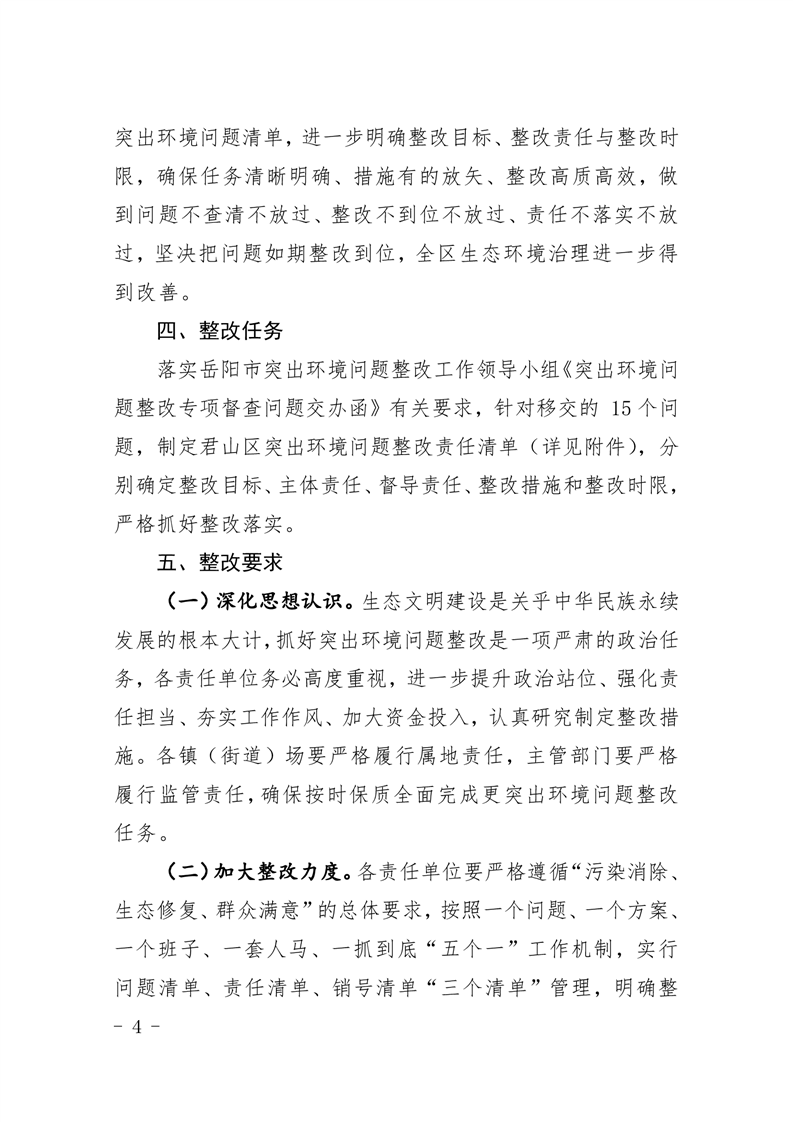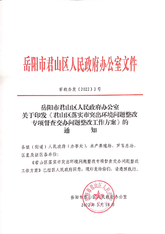 关于印发《君山区落实市突出环境问题整改专项督查交办问题整改工作方案》的通知