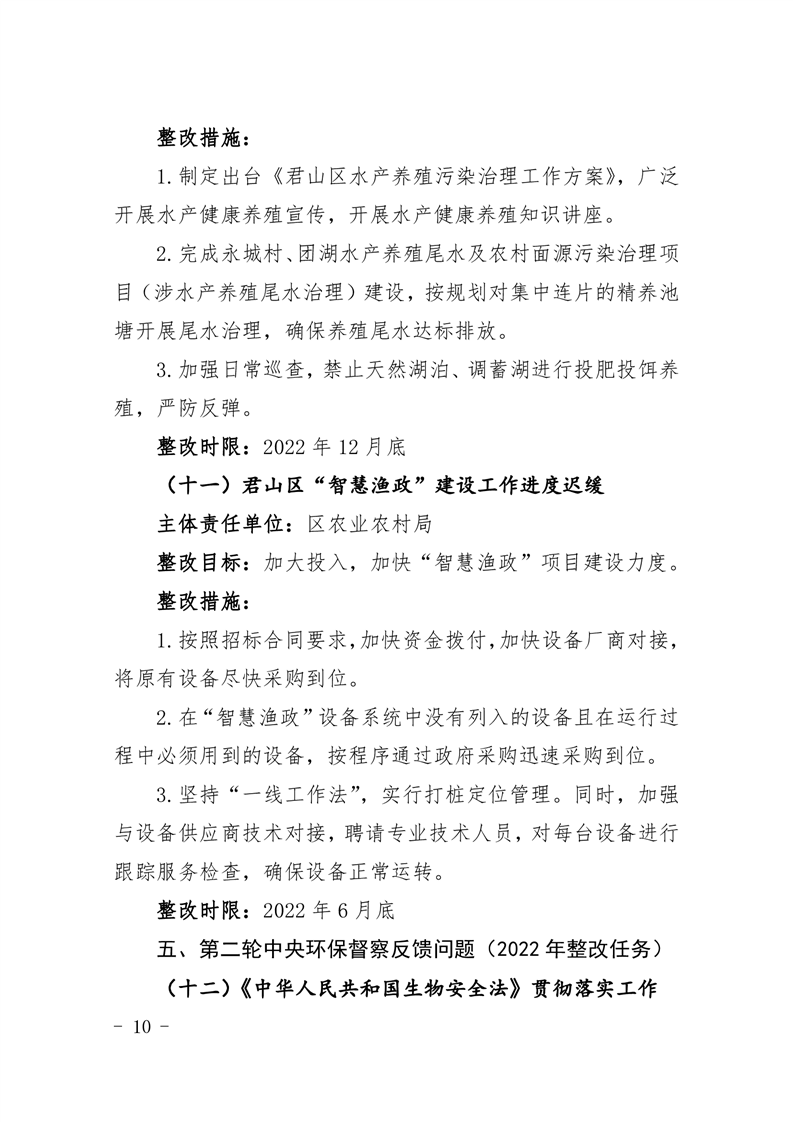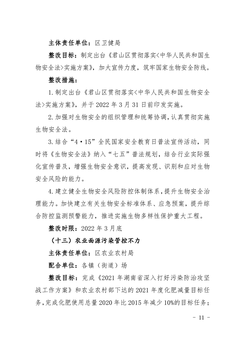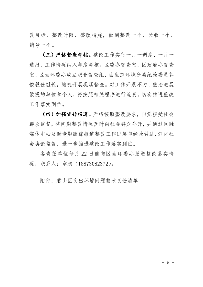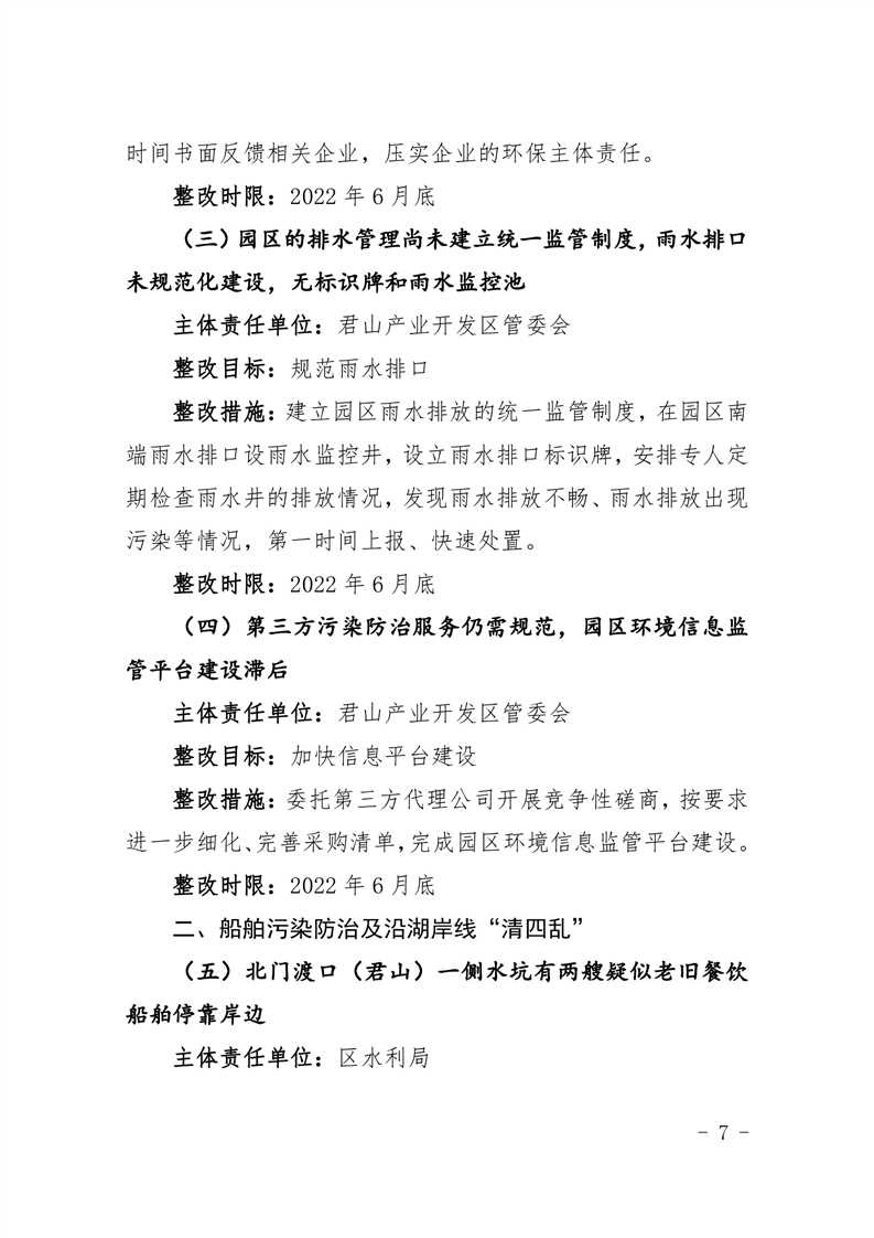关于印发《君山区落实市突出环境问题整改专项督查交办问题整改工作方案》的通知