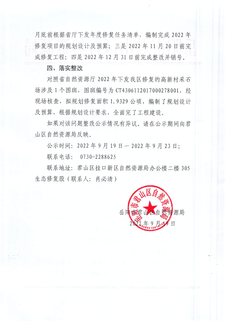 关于落实岳阳市长江经济带生态环境“举一反三”自查问题整改公示