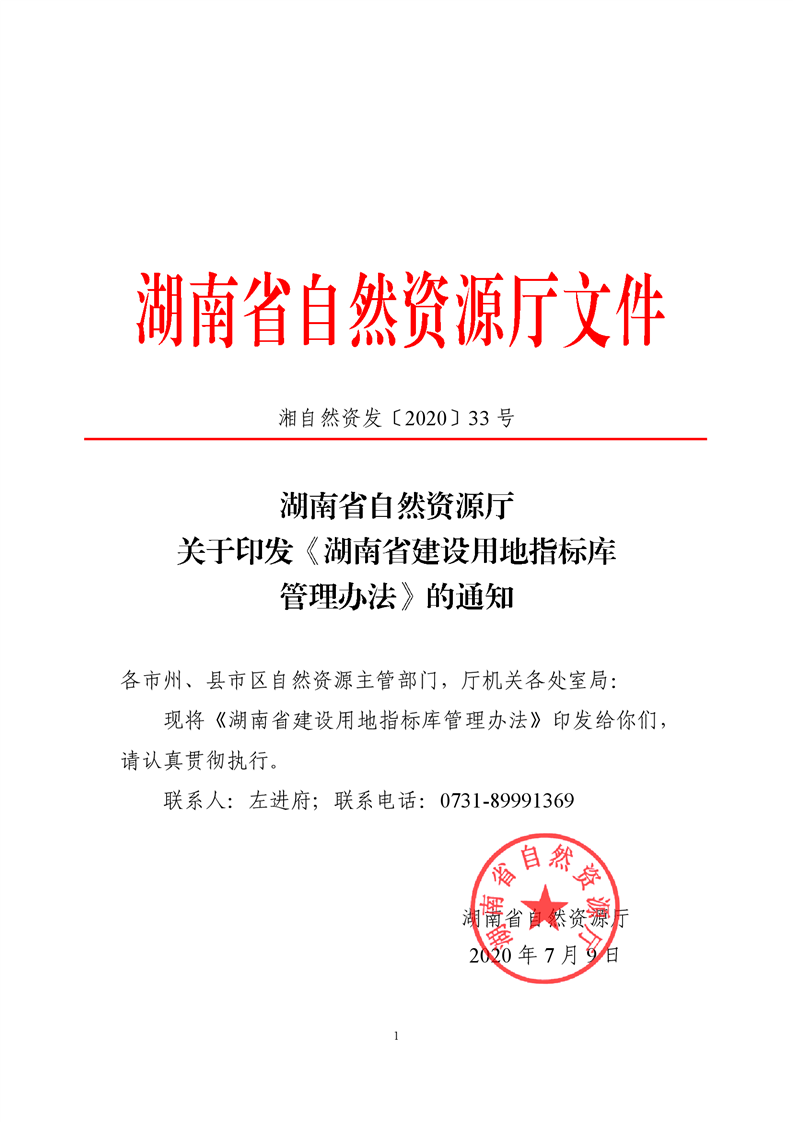 关于印发《湖南省建设用地指标库管理办法》的通知