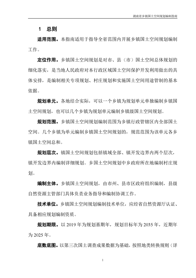 关于印发《湖南省乡镇国土空间规划编制指南(试行)》的通知