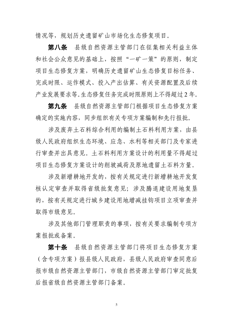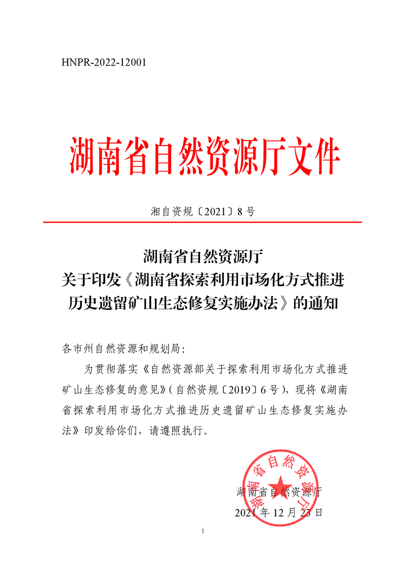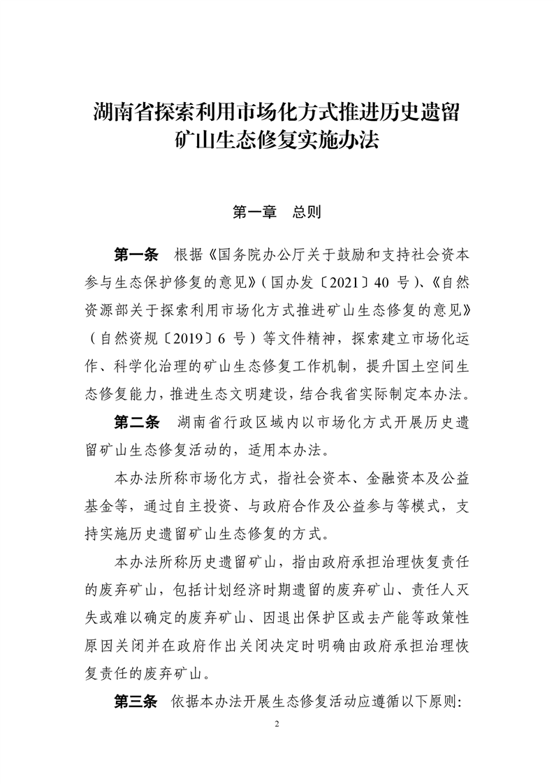 关于印发《湖南省探索利用市场化方式推进历史遗留矿山生态修复实施办法》的通知