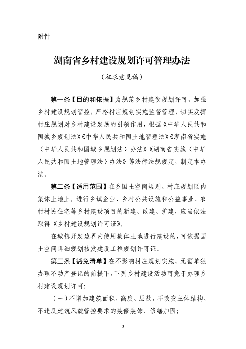 湖南省自然资源厅关于征求《湖南省乡村建设规划许可管理办法(征求意见稿)》意见的函