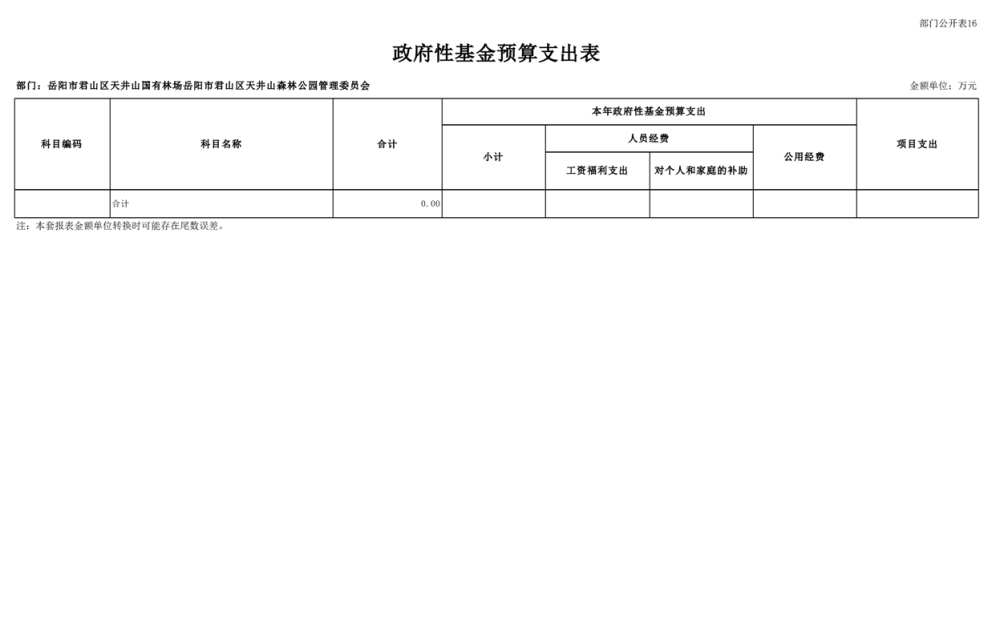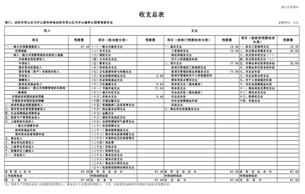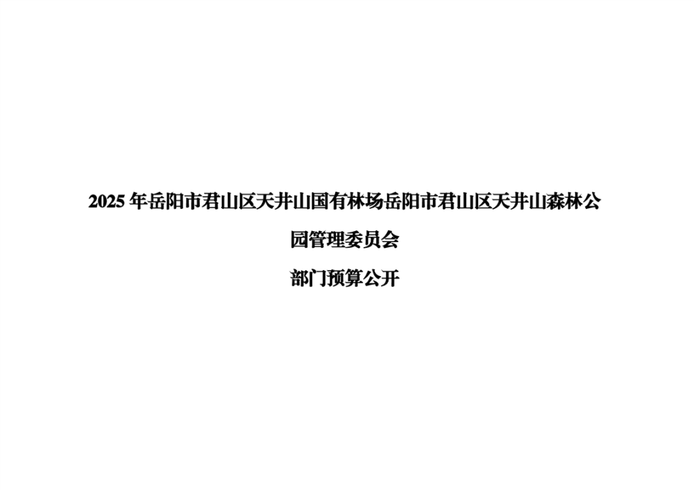 2025年岳阳市君山区天井山国有林场 岳阳市君山区天井山森林公园管理委员会部门预算公开