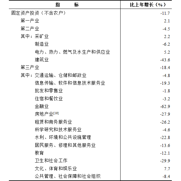 [15]基础设施投资包括铁路运输业、道路运输业、水上运输业、航空运输业、管道运输业、多式联运和运输代理业、装卸搬运业、邮政业、电信广播电视和卫星传输服务业、互联网和相关服务业、水利管理业、生态保护和环境治理业、公共设施管理业投资。