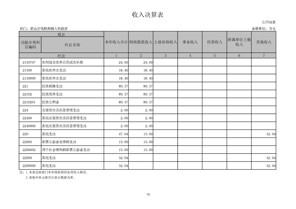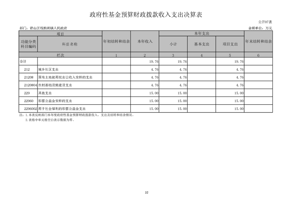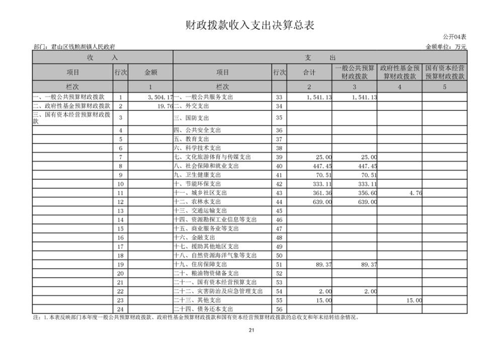 2024年度君山区钱粮湖镇人民政府部门决算公开