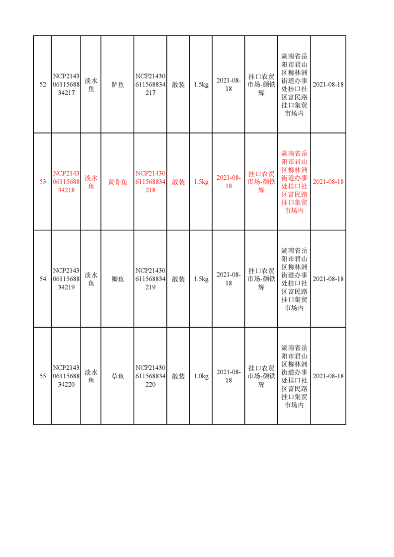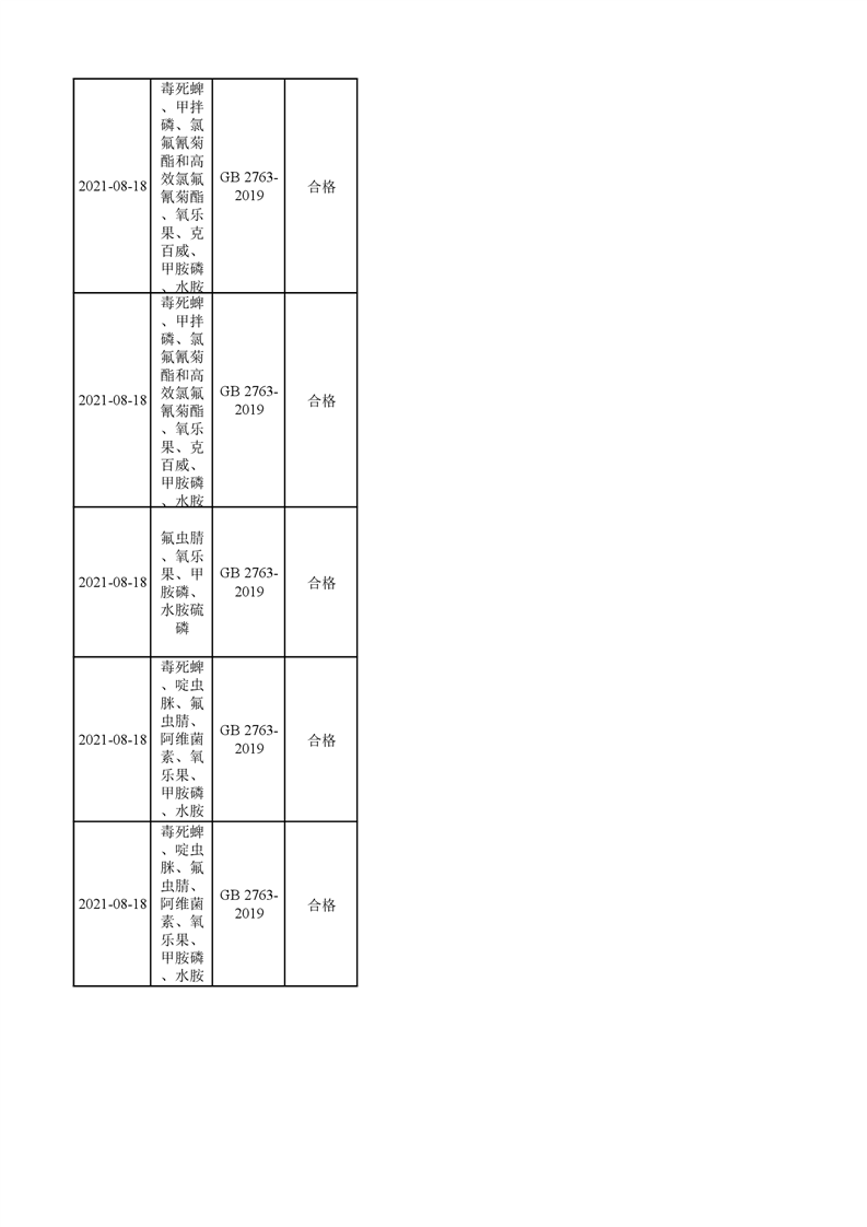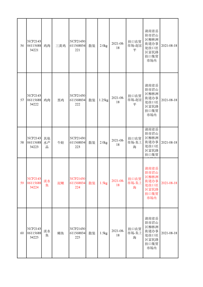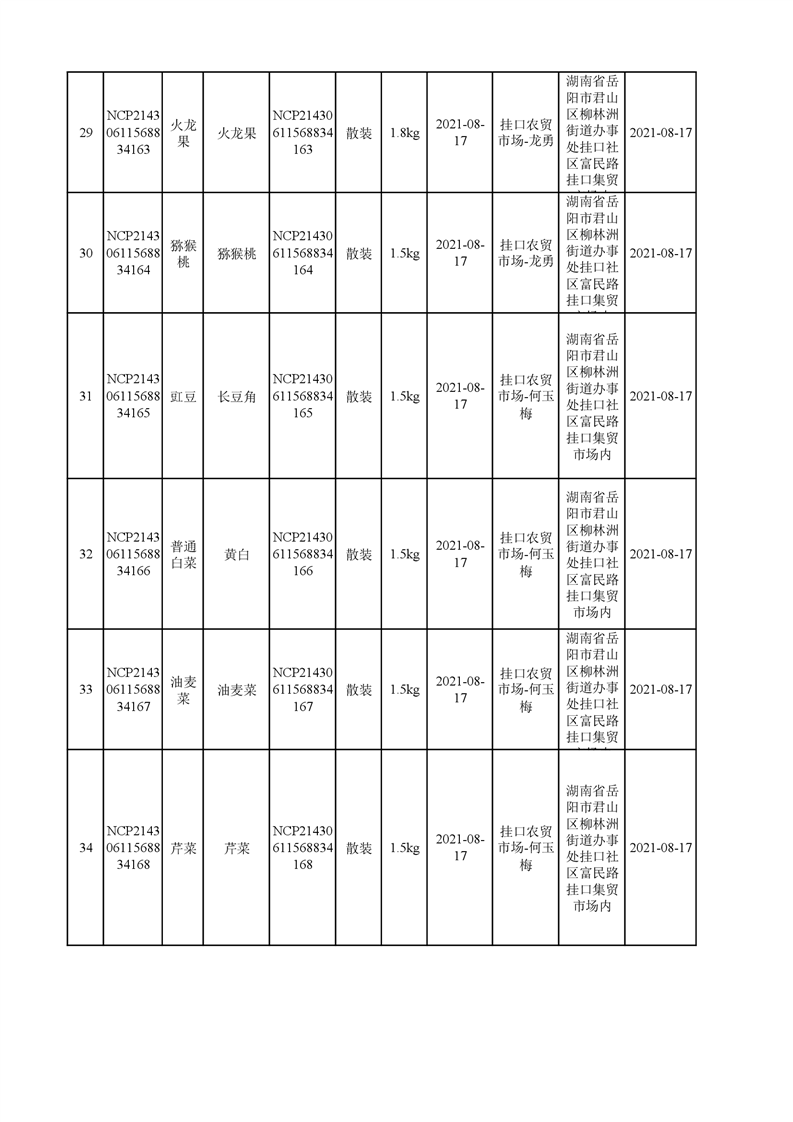君山区市场监督管理局食品检验结果公示(食用农产品90批次)