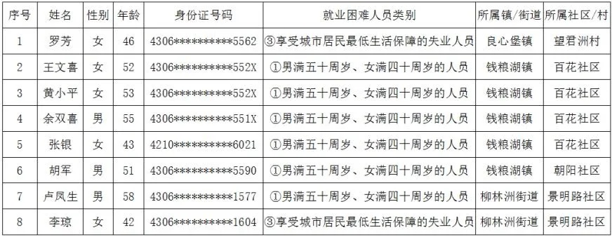 根据省人社厅《关于进一步做好就业困难人员就业援助工作的通知》规定,经居民主动申请,户籍地社区/村初审,镇/街道复核,现将《君山区2026年1月拟认定就业困难人员名单》进行公示,公示时间:2026年1月27日至1月29日,如有异议,请联系0730-8115256。对公示无异议或经举报、核查不影响正常申报的人员,区就业服务中心将于本月完成审核。
