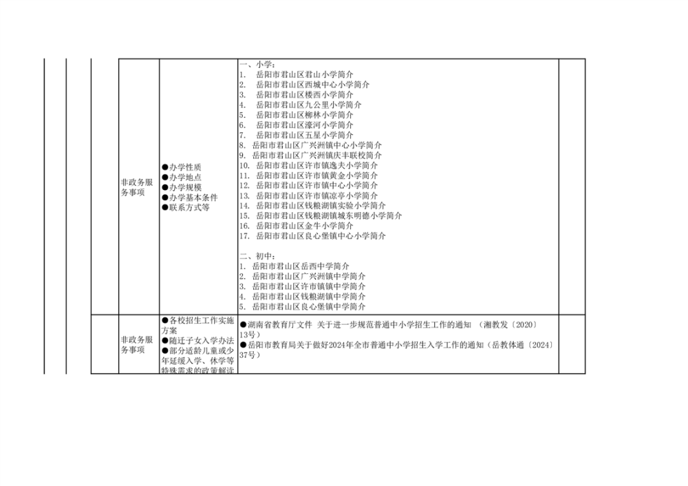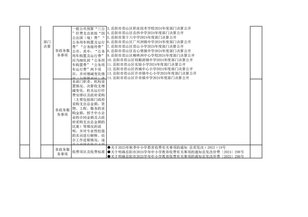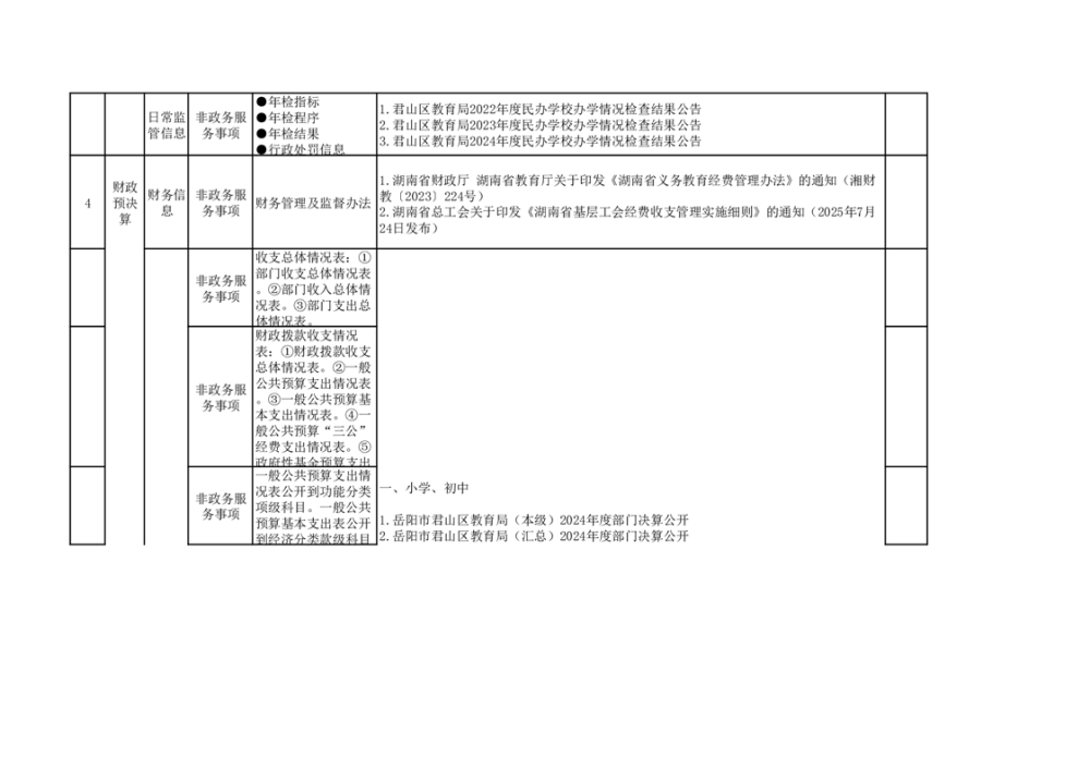 君山区义务教育领域基层政务公开标准目录(2025年)