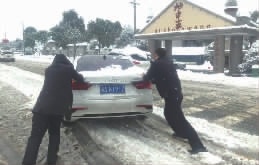 2018年12月30日益阳民警将车辆推出雪坑