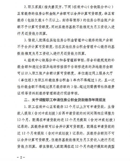 该细则明确,此次仅调整了住房公积金贷款可贷额度的计算公式,最高贷款额度依然保持60万元不变。职工家庭(指夫妻双方)在该中心(含铁路分中心)政策缴存的住房公积金账户余额可以合并计算可贷额度,存在包括欠缴6个月以上、封存等非正常缴存情形的住房公积金账户余额不予计算可贷额度,同时其缴存基数不能推定为月工资收入进行月还款能力测算。借贷人配偶在其他住房公积金管理中心缴存的账户月不予合并计算可贷额度,但其缴存基数能推定为月工资收入进行月还贷能力测算。