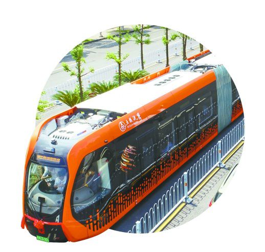 2018年5月8日上午,株洲市天元区神农大道,智轨列车在路上运行。(资料图片) 湖南日报记者 童迪 摄