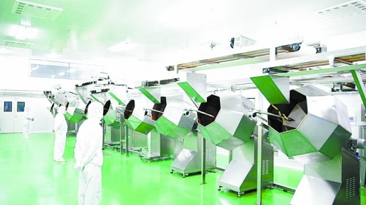 这是一个空气洁净度可用于生产普通药品和奶粉等产品的无尘车间。