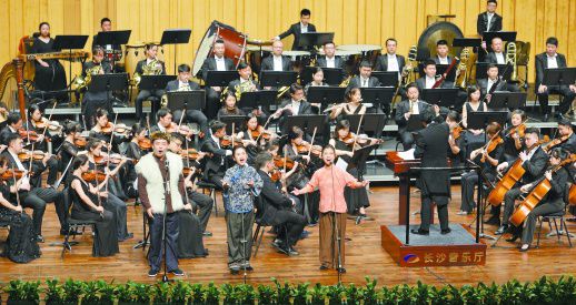 7月1日晚,艺术家在表演三重唱《天边有颗闪亮的星》(选自歌剧《党的儿女》)。当天,由长沙交响乐团演奏的2019湖南音乐季——“唱支山歌给党听”交响音乐会在长沙音乐厅举行,通过咏唱《十送红军》《永远跟党走》《共筑中国梦》等经典曲目,讴歌党的光辉历程与丰功伟绩。湖南日报记者 李健 龙文泱 摄影报道