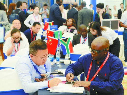 6月28日,中非经贸博览会上,中非与会嘉宾在进行面对面的磋商。记者 徐行 摄