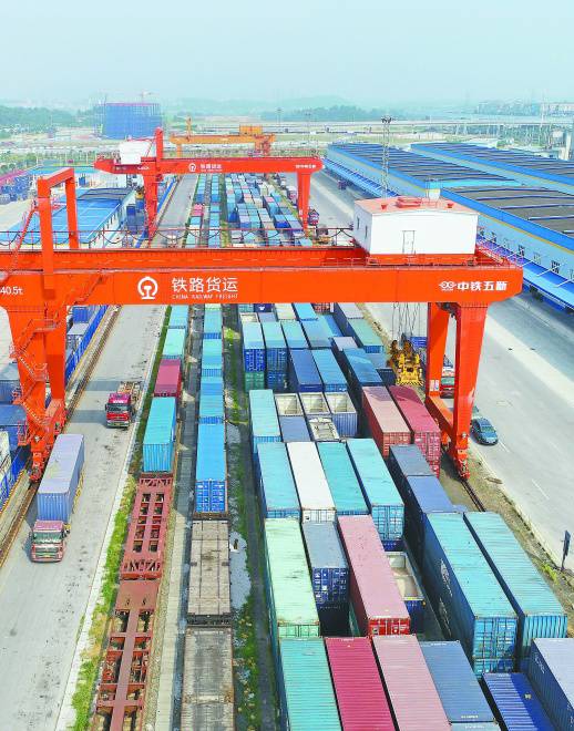8月8日,长沙北铁路口岸国际货场,中欧班列(长沙)集装箱货区。中欧班列(长沙、怀化、株洲)已成为湖南联通欧洲市场的大通道。目前,湖南开行的中欧班列,已进入全国中欧班列第一方阵。记者 李健 摄