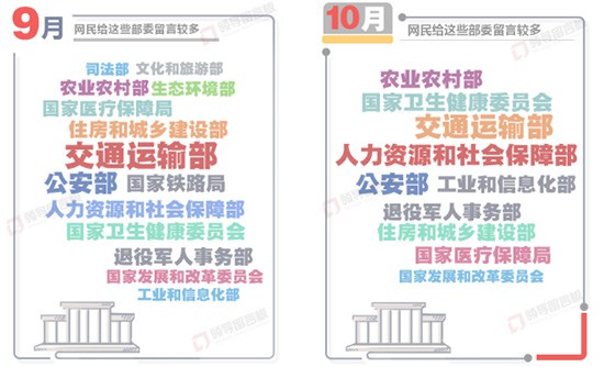从工业和信息化部、民政部、人力资源和社会保障部,到住房和城乡建设部、交通运输部、农业农村部、国家卫生健康委员会、国家医疗保障局等,这些与百姓生活息息相关的国家机关和部委均是网民建言的热门对象。