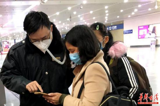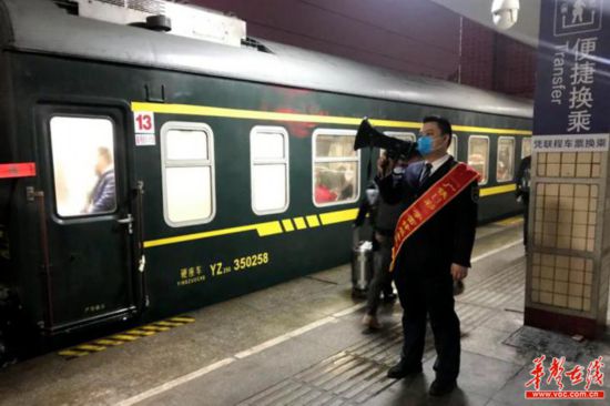 黄峰,长沙高铁南车站客运三班出站口客运员,正在为旅客解答疑问。自疫情发生以来,一直坚守岗位,无请假、无迟到、无缺勤,全力做好疫情期间旅客出行服务工作。
