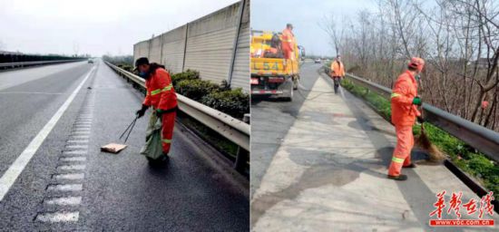 在疫情严峻的形势之下,对于普通民众来说,远离传染源、远离人群是必要的选择,但有这样一群可爱的“橙衣卫士”,一如既往地奔走在长沙绕城高速公路上,坚守岗位,确保道路的安全、整洁。这群“橙衣卫士”已经有20天多未回家了,向他们致敬!