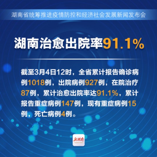 湖南治愈出院率91.1%,114个县市区14天以上0新增,96条“干货”“硬核”政策助力经济恢复……3月4日下午,湖南省政府新闻办召开新闻发布会,一个个数字、一条条措施,让人精神振奋。新湖南客户端为您挑选出发布会重点新闻,看完这几张图,我们或许更有理由相信,春天正在到来。