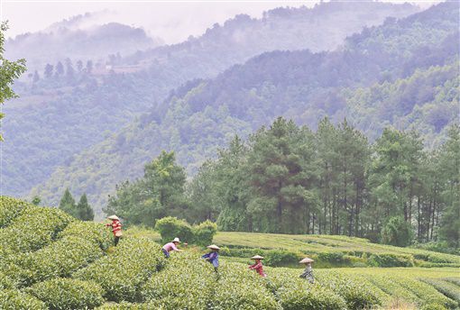 5月9日,古丈县红石林镇铁马洲村,村民在茶叶基地采茶。近年,该县采取“龙头企业+专业合作社(大户能人)+农户(贫困户)”的模式发展茶产业,带动了6500余户建档立卡贫困户、25000多人就业。通过土地流转和务工,贫困村民每年人均实现增收2000元以上。记者 童迪 摄