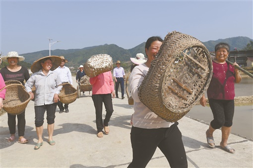 4月26日早上,泸溪县武溪镇红岩村,村民沐浴着阳光前往生态休闲农业示范园进行春管。该示范园占地150亩,农忙时可安排40多人务工。今年以来,已为村民发放劳务工资12万多元。记者 李健 摄